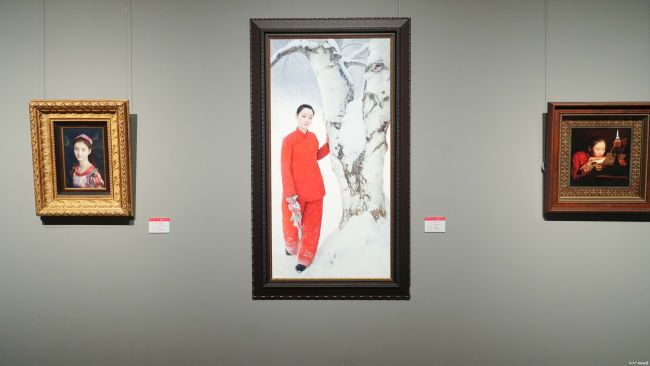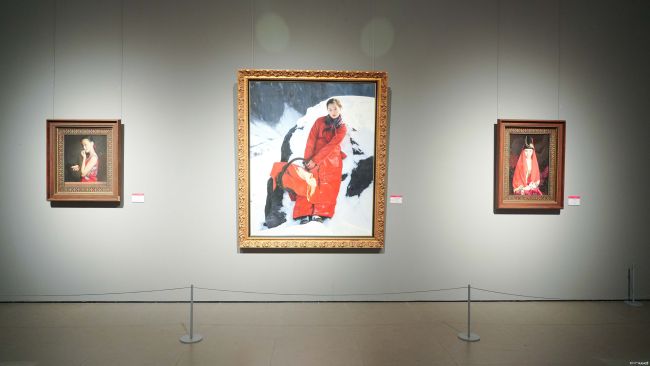 开幕式伴随着音乐学院教授郝益军悠扬的笛声《沂蒙山小调》拉开帷幕,由国际艺术交流学院根据王沂东画作中最具代表性的红衣少女形象为创意来源,结合AI技术生成脚本,结合舞蹈、戏剧等元素,由舞蹈学院、戏剧学院、国际艺术交流学院学生演绎了情景剧《红布纪 沂蒙情》,渲染了画展浓浓的乡土情缘和代代相传、生生不息的沂蒙精神。