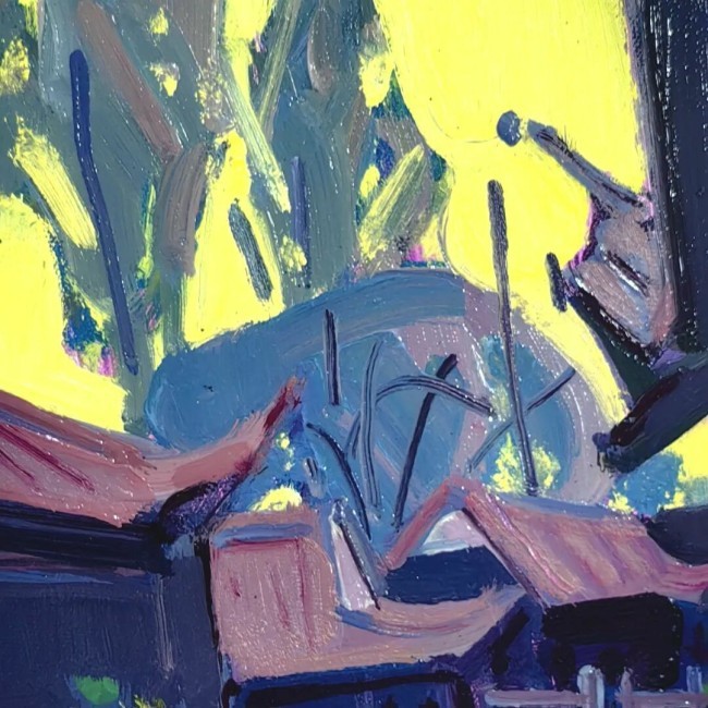 从技法层面看,宋永进的风景创作呈现出“笔触书写化”“色彩诗意化”“构图留白化”三大特征。其一,笔触的书写性是其风格的标志性符号。他摒弃了传统油画平滑的笔触衔接,转而采用富有节奏感的“写式笔触”——有时是快速扫过的长线条,表现远山的连绵;有时是点状的短促笔触,模拟稻田的肌理;有时则以厚重的油彩堆叠,塑造老墙的质感。这些笔触并非随意挥洒,而是如书法中的“提按顿挫”,暗含力度与节奏,如《秋阳》中,阳光穿过树梢的光斑,以跳跃的黄色短笔点缀,既表现了光影的灵动,又传递出秋日午后的慵懒暖意,实现了“笔随心动”的艺术效果。