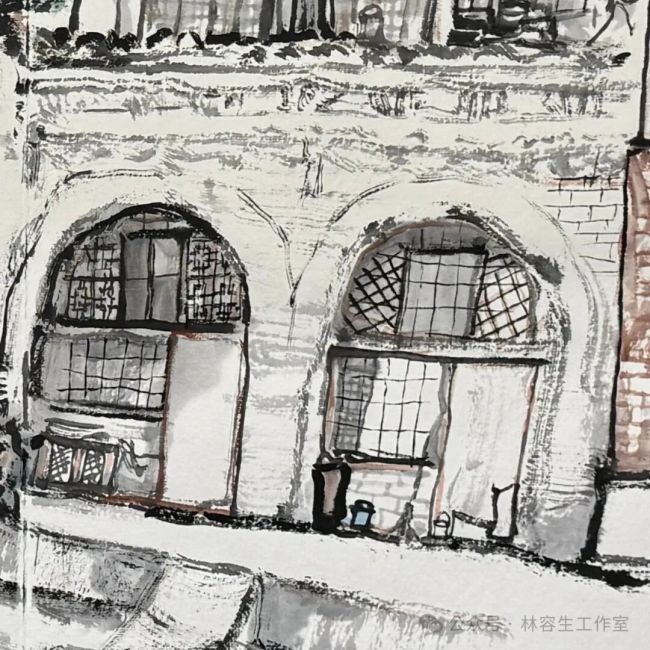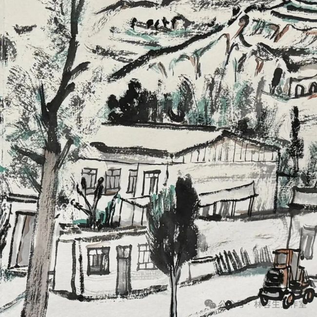 娄烦西六度民居 纸本水墨设色 45x64cm 2025