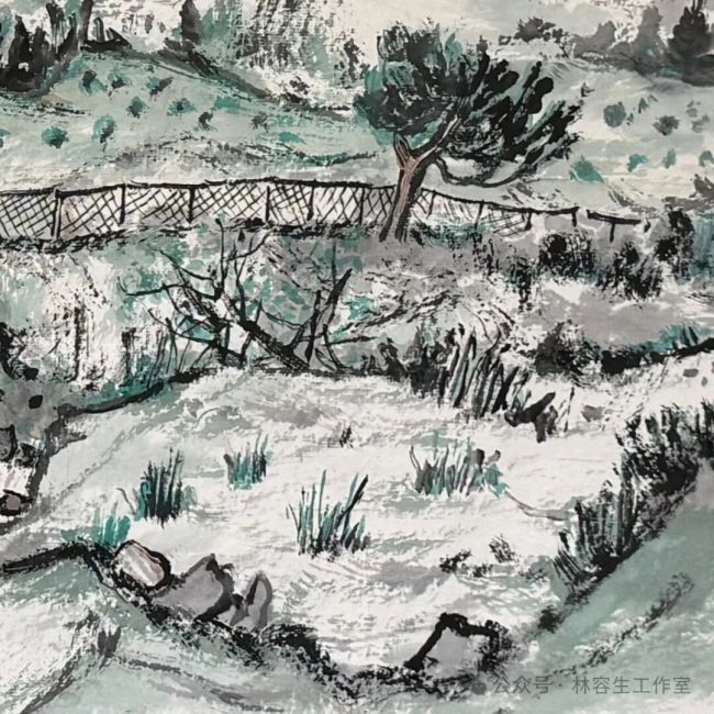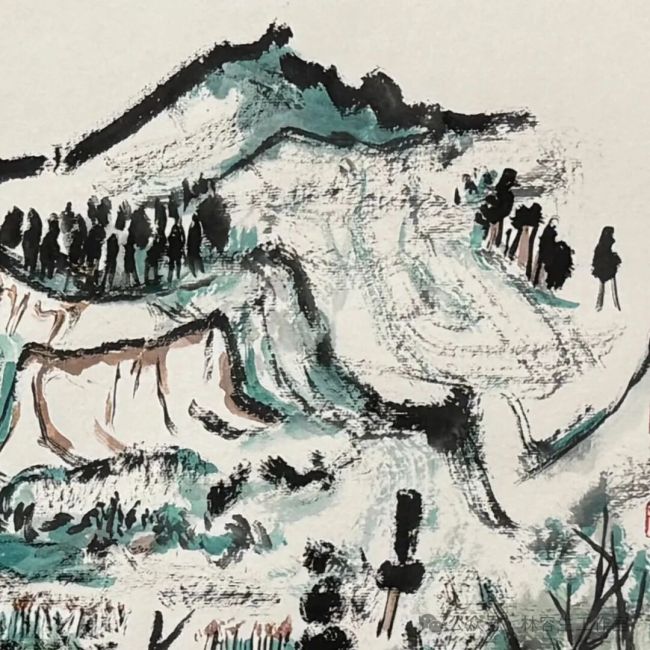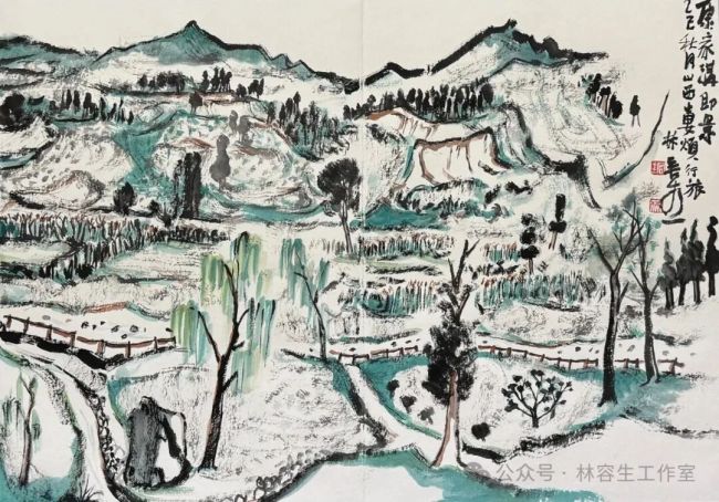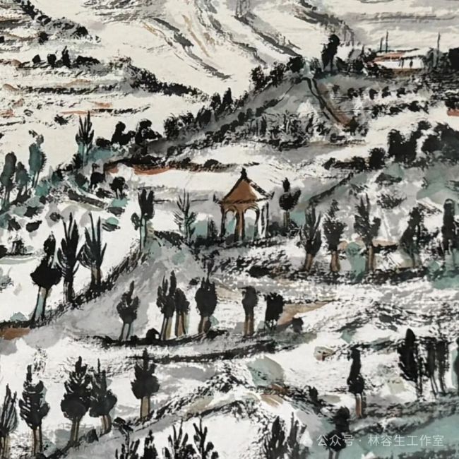 娄烦东山即景 纸本水墨设色 45x64cm 2025