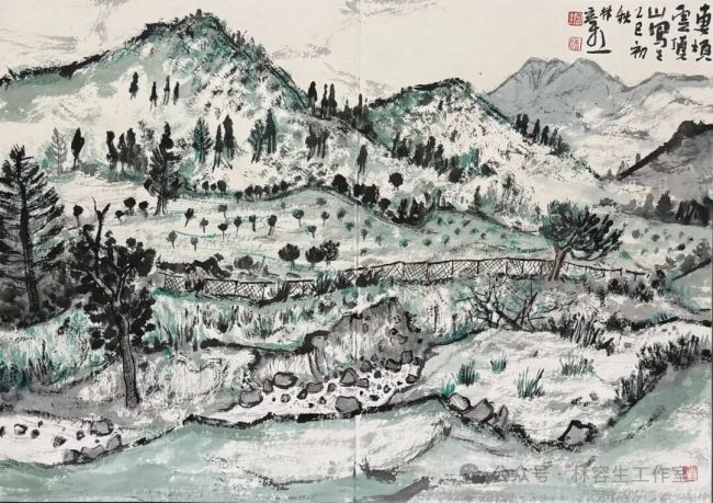 云顶山谷 纸本水墨设色 45x64cm 2025