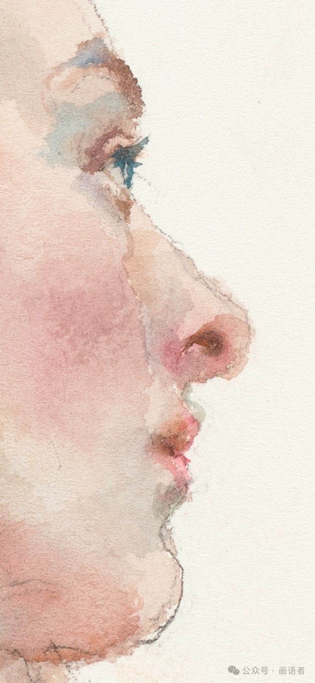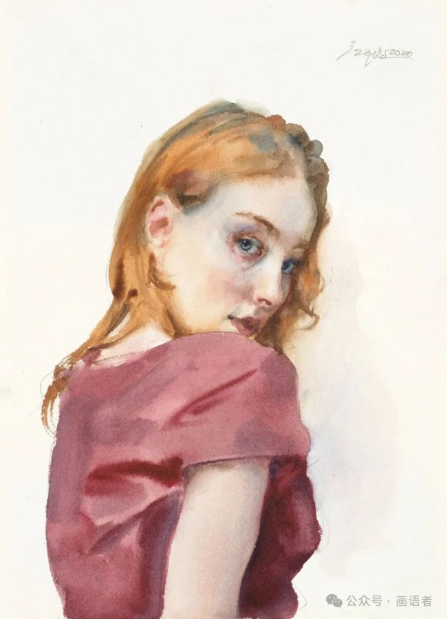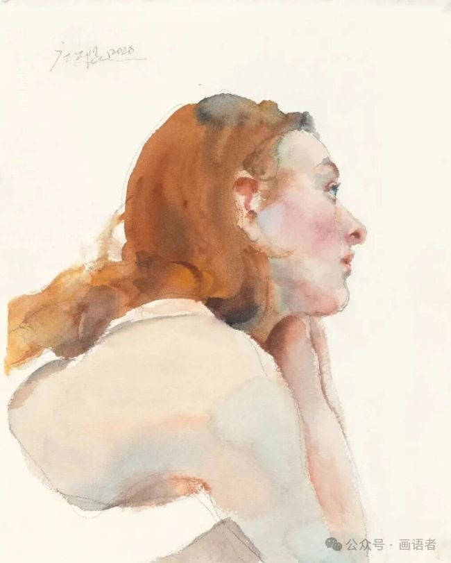 在造型处理上,其画作展现出一种“写实的诗意”。他具备扎实的古典造型功底,对人体结构、空间关系的理解深入骨髓。然而,他并未止步于客观再现,而是将这种严谨的写实能力内化为一种视觉的“语法”。在此基础上,他进行大胆的概括、提炼与适度夸张,使形体在精准中蕴含着抒情的节奏感。面部表情的刻画,尤其精微,往往于寥寥数笔中,眼神的光彩、嘴角的牵动,便已承载了千言万语。这种“意到笔不到”的含蓄与节制,赋予其作品一种东方式的美学韵味,一种“此时无声胜有声”的情感张力。