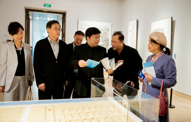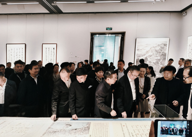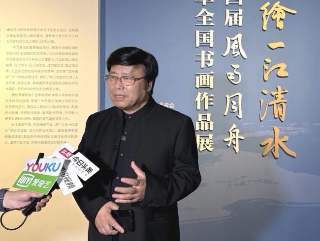 何报翔在讲话中指出,自2021年开始,受中共中央委托,各民主党派中央、无党派人士围绕长江生态环境保护,开展为期5年的民主监督工作。今年是“绿水青山就是金山银山”理念提出20周年,也是长江生态环境保护民主监督工作的收官之年。我们举办以“共绘一江清水”为主题的书画作品展,邀请民革30个省级组织共同参与创作长卷《新长江万里图》,正是希望讲好长江流域生态环境保护和高质量发展的生动故事,展现民主党派在参与长江生态环境保护民主监督工作实践中的积极作为。他强调,要深刻把握文艺工作的正确方向,自觉把艺术追求融入国家建设事业之中,创作出更多无愧于我们这个伟大时代、伟大国家、伟大民族的优秀作品,为强国建设、民族复兴添砖加瓦、贡献出力。