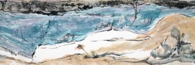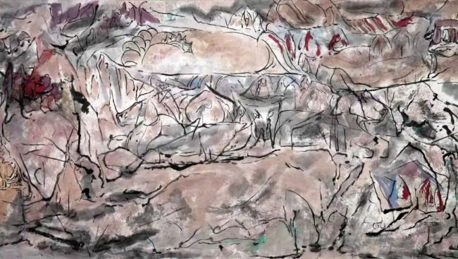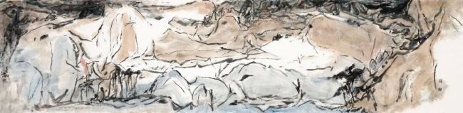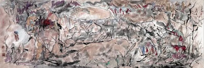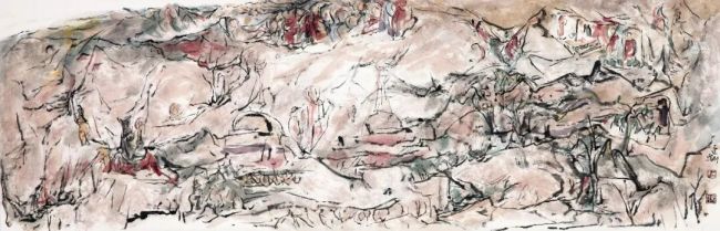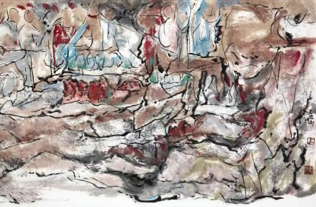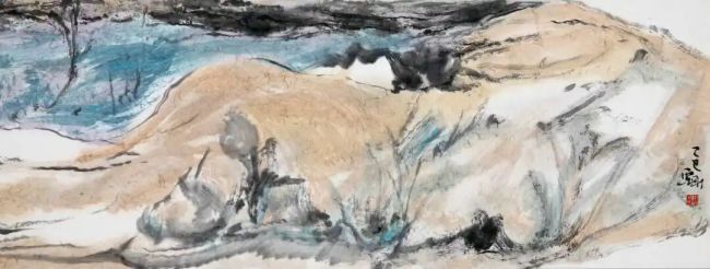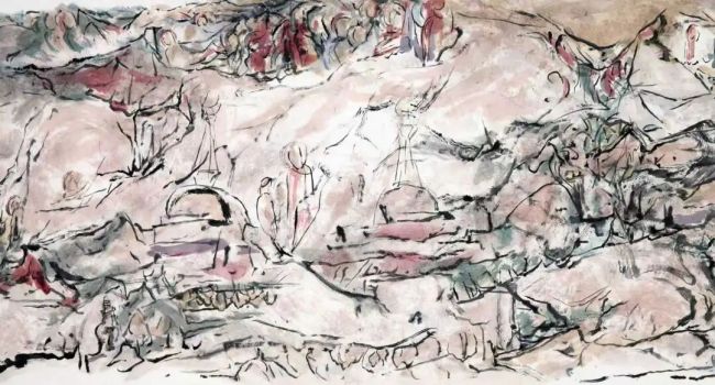 我去陇东写生,穿行在黄土与山峦之间。我看到自然如何包裹着文明的遗迹,风雨如何雕刻着时间的面容。那一刻,我不是在“画敦煌”,我是在画我与这片土地的关系,画一种人与自然的共在,画一种“在场”的体悟。这些经历,逐渐沉淀为我笔下的语言。我的画,不是对敦煌的转译,也不是对石窟的摹写。它是我从河西到陇东一路行走的内心痕迹,是我在自然与遗迹之间获得的细微知觉,是我作为一个西北画者,对“敦厚之行”与“精神在场”的朴素回应。