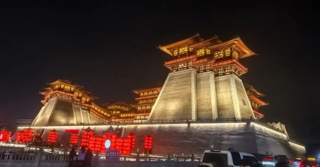 四个多小时的车程很快过去。抵达洛阳时,天色尚早,夕阳在远处的楼宇间留下一层柔和的金辉。十月的洛阳,天空湛蓝,偶有几缕白云如轻纱般飘在天边,空气里混着桂花的甜香和烤栗子的焦香。我们入住的“七寻酒店”就在应天门附近,步行不过一两百米。放下行李,大家便迫不及待地迈出房门,仿佛每一步都在与历史对话。
