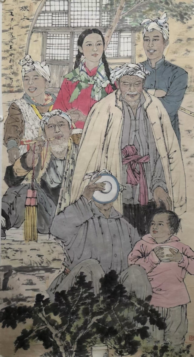 支撑这份文化表达的,是他极具辨识度的笔墨温情。浓墨如暮色中的牦牛群,沉静而温暖;淡墨似黎明前的星辉,清冷而明亮。干笔掠过纸面,能感受到沙砾摩挲的质感;湿墨浸润处,仿佛能闻到青稞酒的醇香。这种墨韵不是技巧堆砌的结果,而是对生命本质的虔诚礼赞。画中人物与天地共生,与万物共鸣,他们本就是这片土地自然生长的灵魂。这种笔墨语言的适应性与创造性,让不同少数民族的形象在他笔下既各有风姿,又统一于那份温暖的人文关怀中。