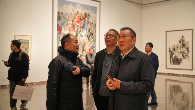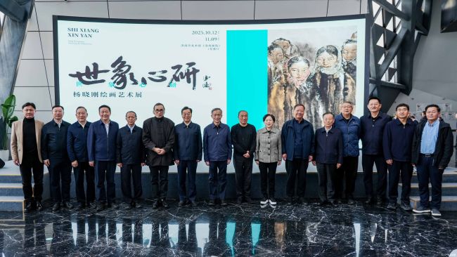 刘万鸣在致辞中表示,与杨晓刚相识多年,在艺术探索道路上有着深切的共鸣。他指出,杨晓刚的艺术风格始终在形与意的辩证中寻找独特表达。在深厚的家学影响下,浸染在济南悠久的自然历史文脉中,同时深受山东优秀前辈艺术家滋养,以及系统的学院派美术教育,使其创作不是简单的客观再现,而是对物象内化的提炼与对神的寄托。并认为此次“世象心研”的展览主题,是其多年来创作的凝练表达,将少数民族同胞的质朴纯粹、时代楷模的坚毅品格、重大历史题材的雄浑气象,熔铸为独具个人标识的艺术语言,彰显了艺术家应有的人文初心。