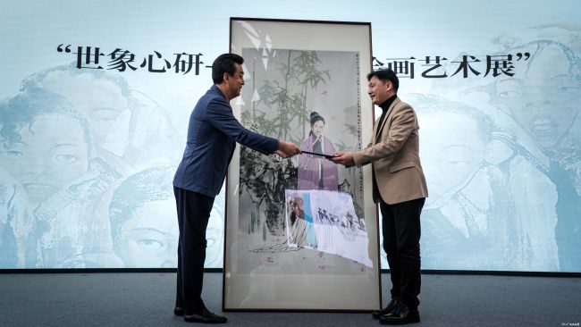 开幕式上,杨晓刚向济南市美术馆(济南画院)捐赠了作品,徐琳为其颁发收藏证书。