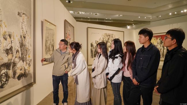 杨晓刚深情地讲述了自启蒙至今的艺术探索之路,尤其对所有给予帮助、支持与鼓励的嘉宾、师长、朋友、家人表达了感谢。杨晓刚回顾,艺术启蒙时期父母给予自己的关爱与关怀,使他有机会与艺术结缘,从此踏上了这条道路。从最初的学习到形成个人独特艺术风格,每一步都凝聚着恩师们的培养与爱护。他坦言,是对艺术的执着追求和各方的支持,才得以在现实主义水墨人物画中一直坚守。分享中,杨晓刚着重表达了感恩之情。他动情地说,一路走来,离不开挚爱亲朋的认可,师长们的悉心教诲,朋友们的鼓励,更少不了家人始终如一的理解与支持。这些是他艺术道路上不断前行的动力源泉。他表示,未来将怀揣这份感恩之心,继续在艺术领域深耕细作,创作出更多富有温度和深度的作品,在公共文化服务的岗位上策划高质量的活动,回馈社会、回馈人民。
