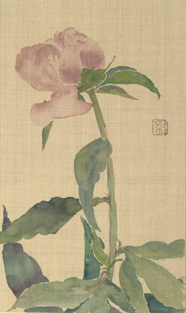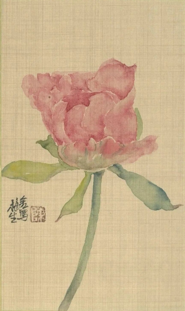 牡丹、芍药花系列对没骨设色的探索更显功力。粉色系花卉在米黄绢本的映衬下,色彩渐变如朝露凝香,叶片的墨绿、深翠通过浓淡变化塑造出立体层次,既规避了工笔重彩的板滞,又消解了写意水墨的粗放,于“色墨交融”间达成“形神俱足”的审美境界。这种实践,是对宋元“写生逼肖”与“逸笔草草”双重传统的当代整合,在笔墨语言的转译中,让没骨技法的生命力在当代创作中得以延续与拓展。