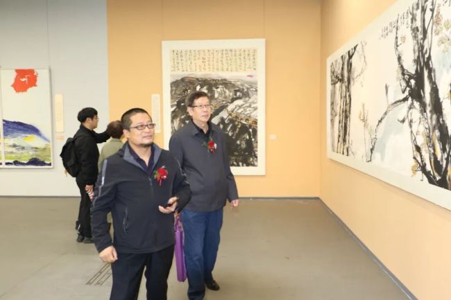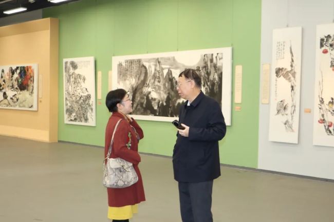 天津市委宣传部副部长王楷夫致辞。他表示,尹沧海教授作为天津市美术家协会副主席,是天津美术界具有重要影响力的艺术家和教育家。多年来,他坚持以人民为中心的创作导向,长期深耕天津这片文化沃土,融汇传统与现代,在艺术创作与人才培养方面取得了丰硕成果,为天津美术事业的高质量发展作出了积极的贡献。尤为值得一提的是,尹教授在长期教学相长的艺术实践中,不仅形成了独具个性的艺术特色,也为天津培养了一大批优秀的美术人才,为推动我市艺术教育事业发展付出了辛勤努力。此次展览,既是对百年学府的诚挚献礼,也是天津文艺创作成果的一次生动的展示,更是我们推动文化强市建设,实施文化惠民工程的具体的实践。