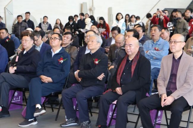 南开大学党委副书记梁琪致辞。他指出,艺术与美学研究院自成立以来,始终以传承中华优秀传统文化、探索当代艺术创新路径为己任,依托综合性大学的多学科优势,在艺术教育、学术研究与美育实践中不断取得新突破,为校园文化繁荣和服务区域文化发展注入了新的活力。尹沧海教授长期深耕于艺术教育与创作领域,不仅为南开大学培养了一大批兼具文化素养与专业能力的优秀艺术人才,更以深厚的学术积淀推动学校艺术学科建设迈上新台阶,为搭建南开大学与国内外艺术院校、文化机构的交流桥梁发挥了关键作用。