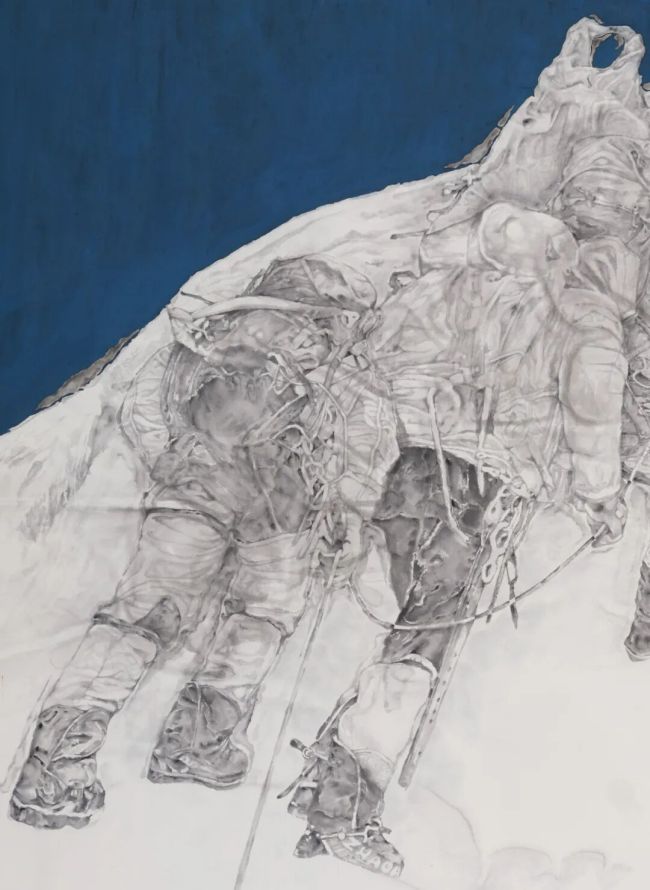 随后在参观日喀则博物馆的时候我又发现了多个登山运动员登山设备实物,便进行初步的拍摄取材,临近返程已搜集了大量一手素材。回到青岛后,初步的草图便已出雏形。随后的一年中,登山的草图经过多次推敲和修改便最终定稿。