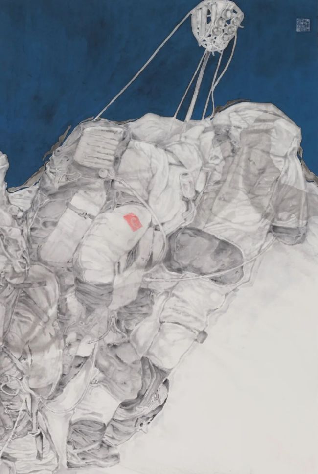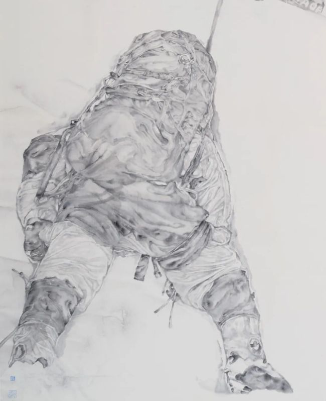 7月22日,在中国美术家协会官网公布的“诗乡画城——2025·中国画作品展复评结果”中,我的中国画作品《我站立的地方是中国》入选。本幅作品用水墨画的语言表现的是中国登山运动员攀登珠峰的场景,我在画每一张画的时候都有创作的动力。2023年10月,我有幸来到珠峰脚下近距离观望世界第一高峰,并在海拔5200米的珠峰大本营住宿和生活,即使有高反的不良影响,但也按耐不住想创作此类作品的意愿。