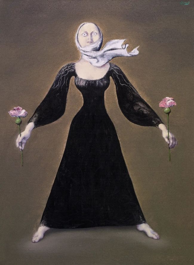 石磊花非花(黑)布面油画