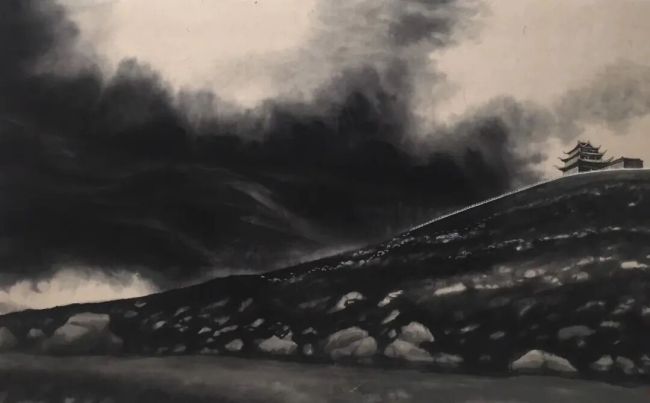 运高这几年画的作品,既很有传统的笔墨气象,又很有现代感,我觉得这一点把握得非常好。从山水本身的图式呈现看,他有比较纯粹的追求,在笔墨的表现上,很苍茫,很浑厚,对墨法的运用很得体,而且在积墨和色墨的对比上,在画面形式的对比感,在画面营造的情绪气氛,我觉得能够比较强烈地传达出来自己内在的对山水的追求。中国山水画发展到今天,一点很重要,就是非常诗性的山水精神,这是不能丢失的,也就是我们常讲的山水精神。山水精神就是我们不能仅仅去描摹一草一木,一山一水,更多的是如何去呈现人和自然的对话,在表达人和自然的关系中那种相容相化的状态,通过这种相容相化、互证互生的状态,来呈现山水画对于造化的体认,甚至是一种大化立志,天地立心的状态,我想这个是山水精神很重要的一点。