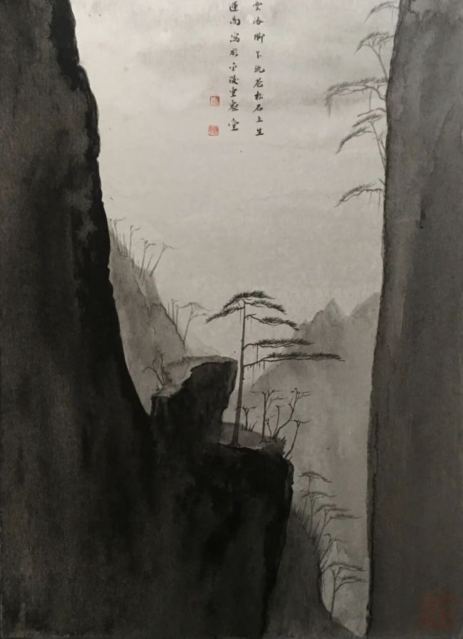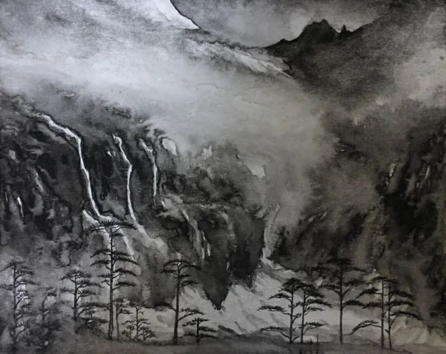 运高的画在色墨的处理晕染上,图式的视觉感比较强烈,笔墨苍厚。这深深地得益于他之前对传统的学习,得益于之前对宋元绘画的理解,他的笔墨语言的呈现,一方面也很巧妙地把黄公望到近代的陆俨少等大家的线条进行再组合转化,从这点看出运高的学习能力非常强,转化能力很好;同时,他对当代的画家也有所借鉴,从这点上说,师古人、师造化、师今人,只要他觉得对形成他的语言图式有帮助的、有补益的他都学习,学习的眼界比较开阔,尤其是对山石的皴法的控制,线的秩序感的安排,线条虽然比较繁密,但是也能看到他内心很激荡的情致,没有陷入一点很匠气的东西,我觉得这个是难能可贵的。从他的笔墨气质里,我看到运高作为一个艺术家,他怎么去造境,去呈现山川的时候,他的激动的心情。记得王国维说:“大诗人所造之境,必合乎自然,所写之境,亦必邻于理想”,两者不能偏颇,我觉得运高在呈现这种状态的时候,形式语言,笔墨追求,精神的指向,都往这种纯度上走,这一点是非常好的,我觉得他这条路是能够走的很远的,我也衷心的祝愿运高在这个探索上越走越好,越走越高。