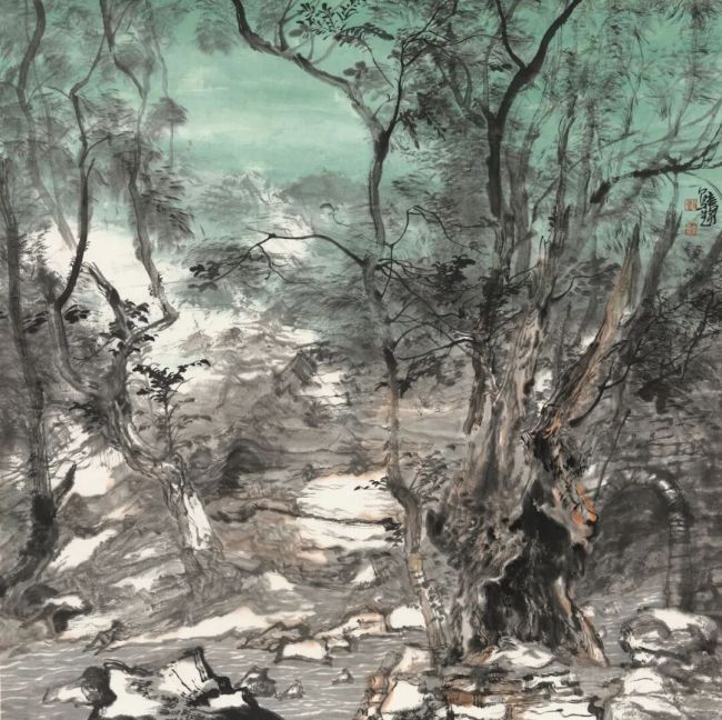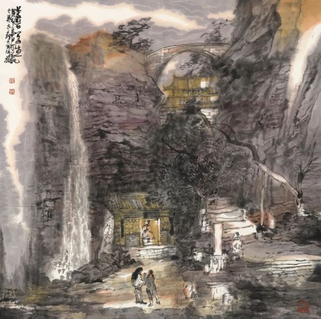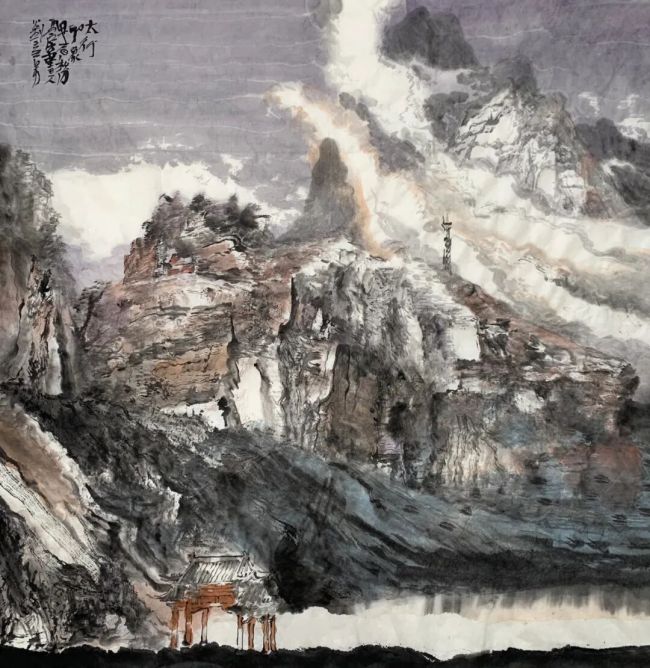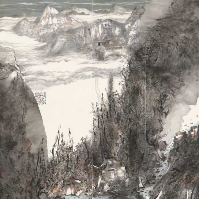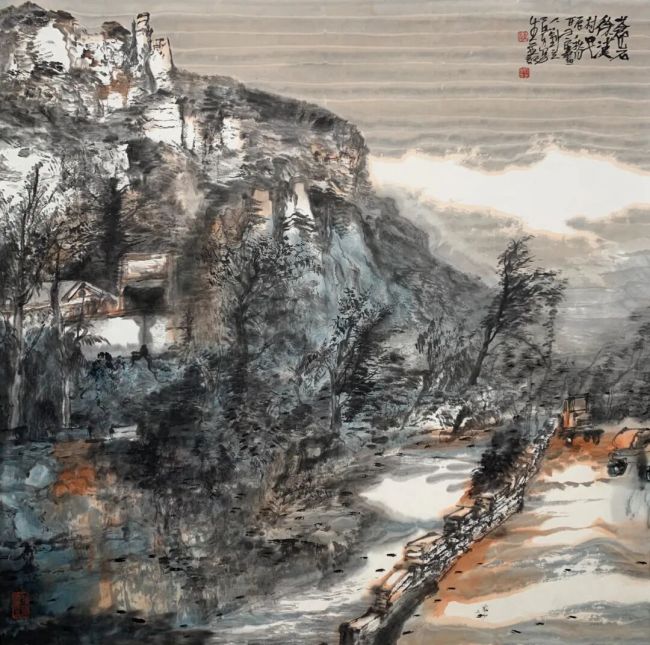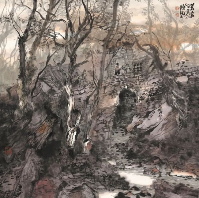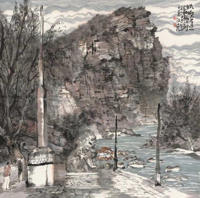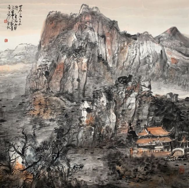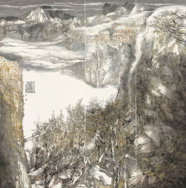 苍岩问晨图一230x230cm(2024)纸本水墨