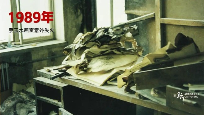 然而,1989年暑假,一场意外事故给了蔡玉水残酷的打击:他的那个与他朝夕相伴的小小画室,遭遇大火洗劫,已经完成的百余张创作、肖像、人体、写生、创作草稿和大量珍贵的资料被烧成灰烬。