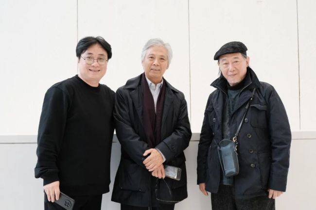 2023年春,王一飞与授业恩师唐勇力教授、尉晓榕教授于中国美术学院