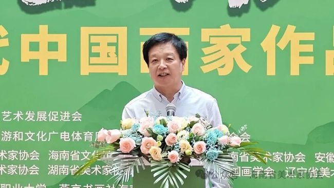 海南省委宣传部二级巡视员林尤铮,海南省委宣传部一级调研员梁健,海南省文学艺术界联合会秘书长贾明慧,海南省文化馆馆长陈虹霓,中国美术家协会原理事、山东省美术家协会原副主席、济南市美术馆原馆长、济南画院原院长杜华,中央文史研究馆书画院执行院长、中国美术家协会理事、中国国家博物馆近现当代艺术品类藏品定级专家马新林,中国美术家协会理事、中国国家画院院委、中国画学会副会长刘建,中国美术家协会理事、中国女画家协会副主席、辽宁省文学艺术界联合会副主席、美术家协会主席王易霓,中国美术家协会理事、湖南省文学艺术界联合会副主席、湖南省美术家协会主席旷小津,中国美术家协会理事、中央文史馆书画院研究员、吉林省美术家协会副主席兼秘书长孙维国。中国美术家协会原理事、海南省名誉主席邓子芳,中国美术家协会原理事、海南省美术家协会名誉主席陈茂叶,海南科技职业大学副校长潘灵出席展览开幕式。开幕式由海南省美术家协会常务副主席符祥康主持。