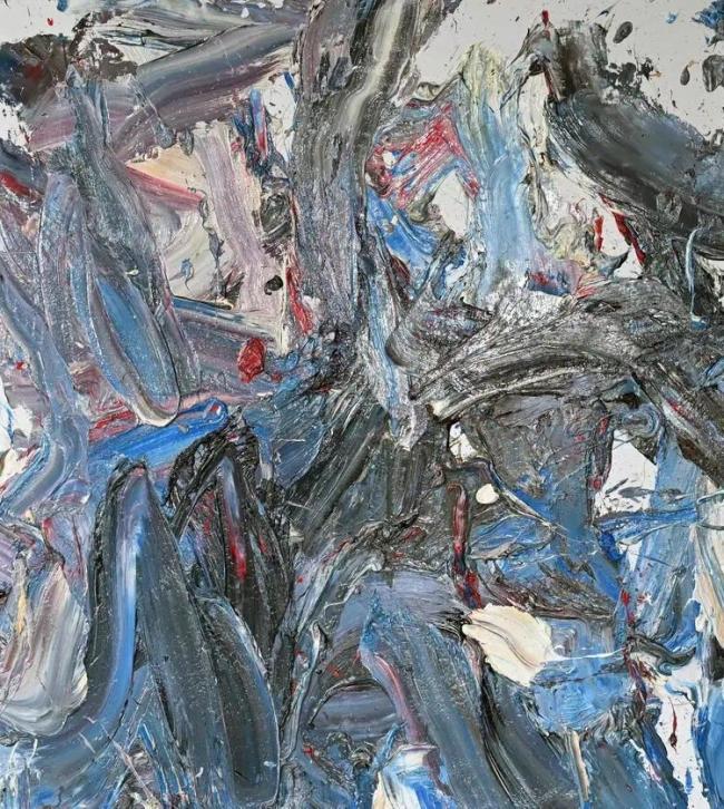 其作品以厚涂与刮刀技法为核心,颜料在画布上形成强烈的物质性与触感。色彩的碰撞与线条的缠绕,构成具有东方禅意的抽象图景,既延续了抽象表现主义的情感宣泄,又融入了中国水墨的气韵流动。这种跨文化的融合,使他的作品在国际语境中保持了鲜明的身份标识。