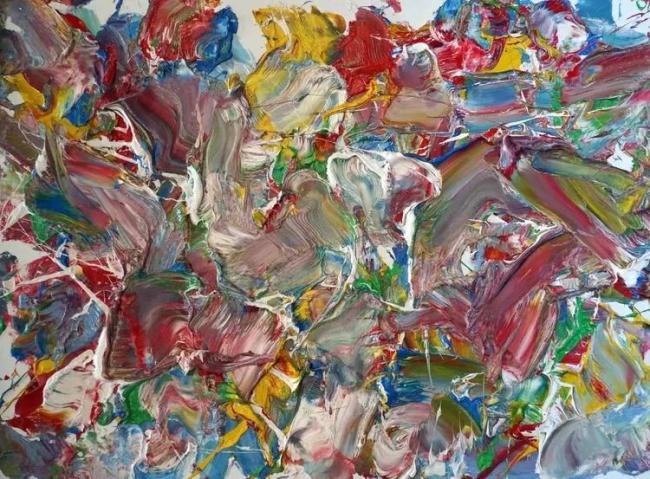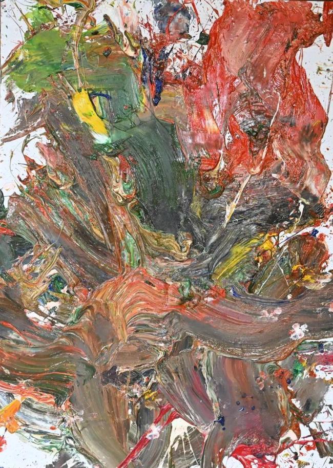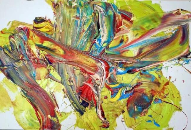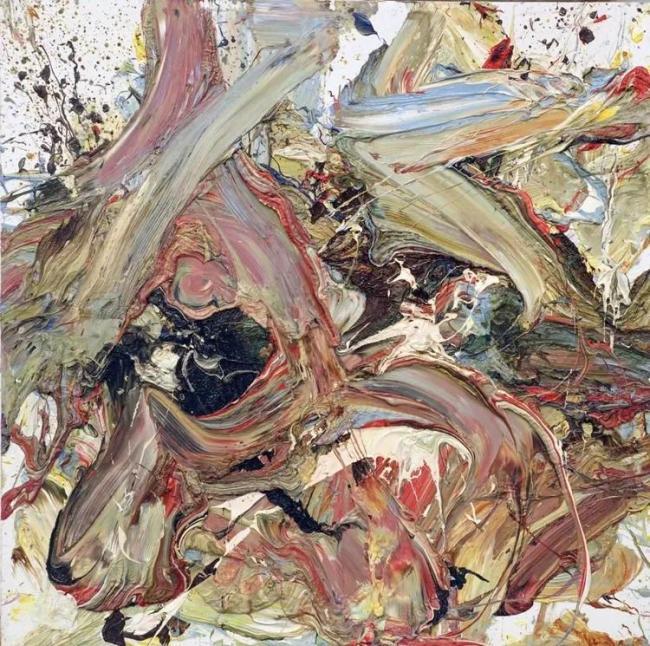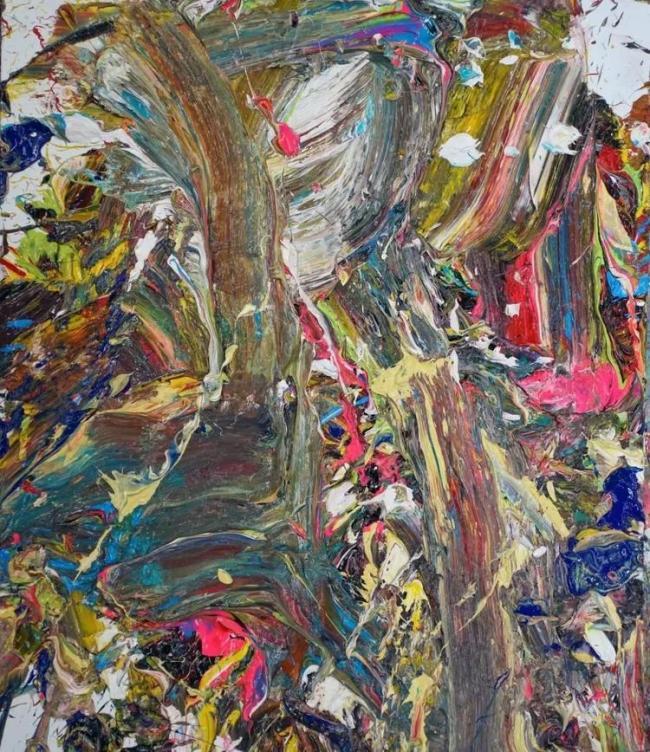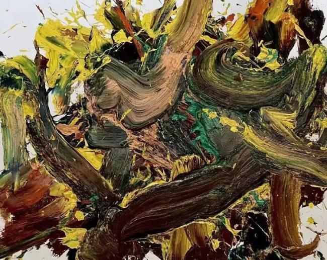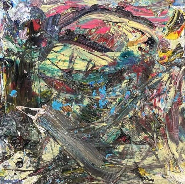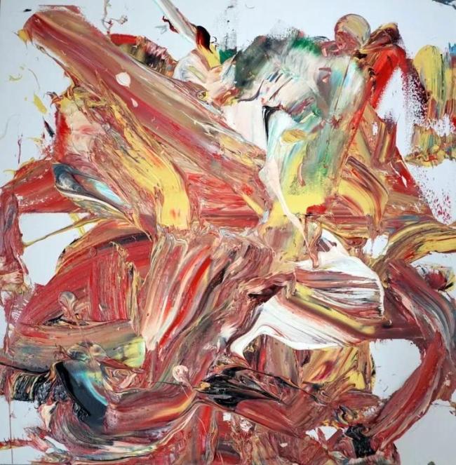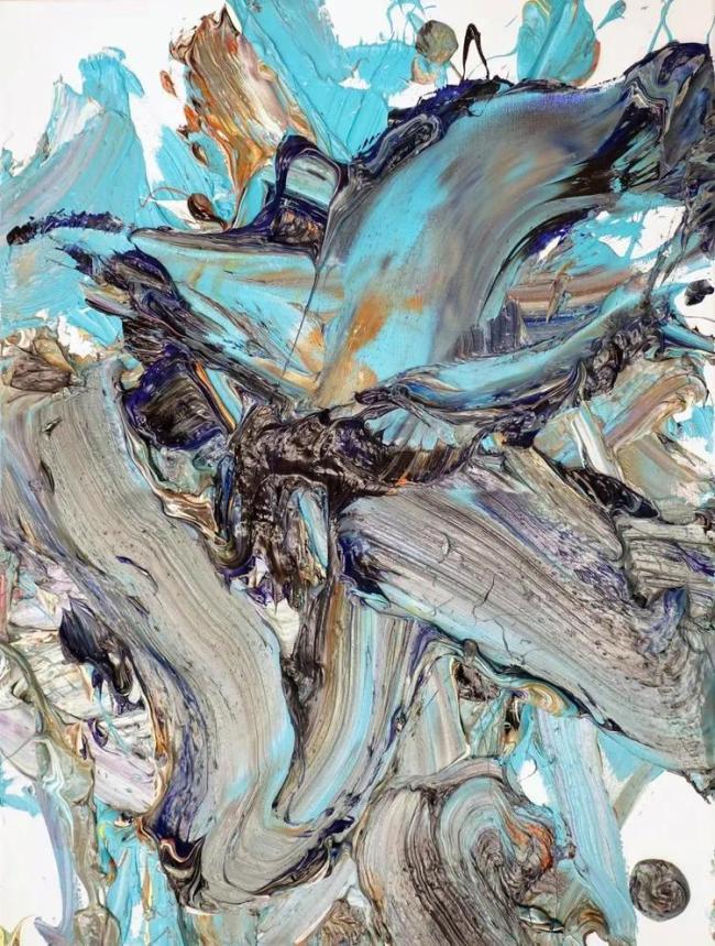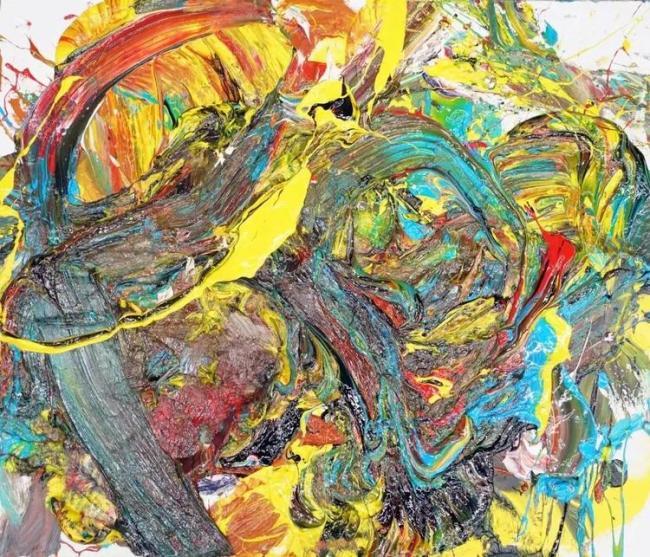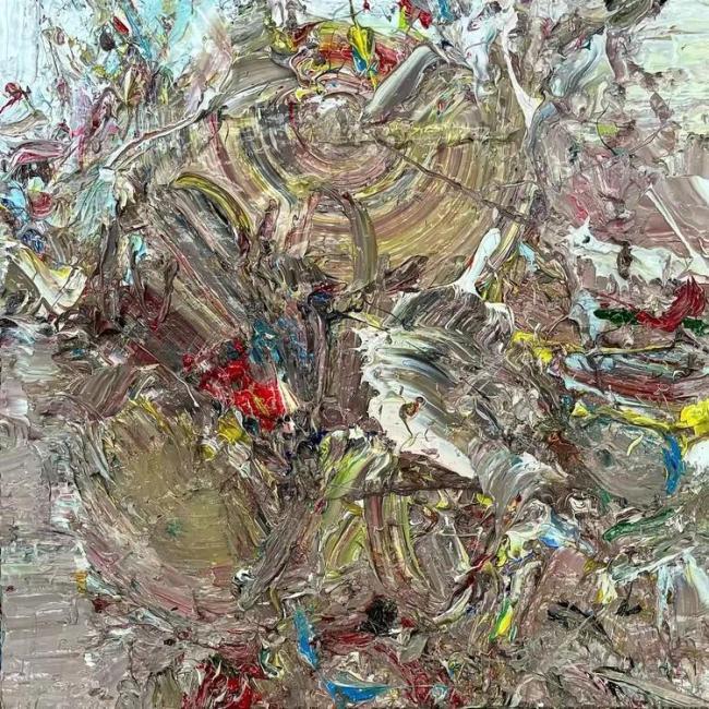 其作品以厚涂与刮刀技法为核心,颜料在画布上形成强烈的物质性与触感。色彩的碰撞与线条的缠绕,构成具有东方禅意的抽象图景,既延续了抽象表现主义的情感宣泄,又融入了中国水墨的气韵流动。这种跨文化的融合,使他的作品在国际语境中保持了鲜明的身份标识。