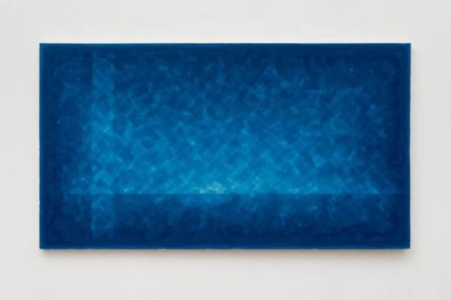 桑火尧的方笔层叠的最大特点在其清。为了清,他的方笔总是单纯,尽可能的简淡,也尽可能通透。在极简极透的笔暇之间,蕴着幽微晃动的光,如涟如漪。这一片片波光水气的荡漾,延月挠风,清醴满盈。桑火尧的方法是让墨色变淡,妙机其微。愈淡愈清,愈清则波光水气越生动。注目若久,便会有一种晕,一种入境的“走神”。“白日曜青春,时雨静飞尘。寒冰辟炎景,凉风飘我身。”(曹植《侍太子坐》)明亮阳光下涟漾的春水,吸引古往今来多少诗人的目光。这种“清”的情趣穿越千年,反反复复地蕴藉着我人的身心。桑火尧的“走神”在于这种晕的本身,这种波光气韵的本身。他仿佛失神于这种简透的光晕之中,他又专神于这种至清至简的清光之境里。