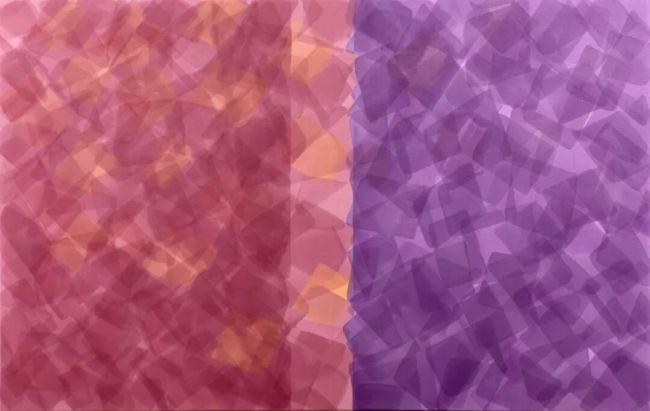 桑火尧的方笔层叠的最大特点在其清。为了清,他的方笔总是单纯,尽可能的简淡,也尽可能通透。在极简极透的笔暇之间,蕴着幽微晃动的光,如涟如漪。这一片片波光水气的荡漾,延月挠风,清醴满盈。桑火尧的方法是让墨色变淡,妙机其微。愈淡愈清,愈清则波光水气越生动。注目若久,便会有一种晕,一种入境的“走神”。“白日曜青春,时雨静飞尘。寒冰辟炎景,凉风飘我身。”(曹植《侍太子坐》)明亮阳光下涟漾的春水,吸引古往今来多少诗人的目光。这种“清”的情趣穿越千年,反反复复地蕴藉着我人的身心。桑火尧的“走神”在于这种晕的本身,这种波光气韵的本身。他仿佛失神于这种简透的光晕之中,他又专神于这种至清至简的清光之境里。