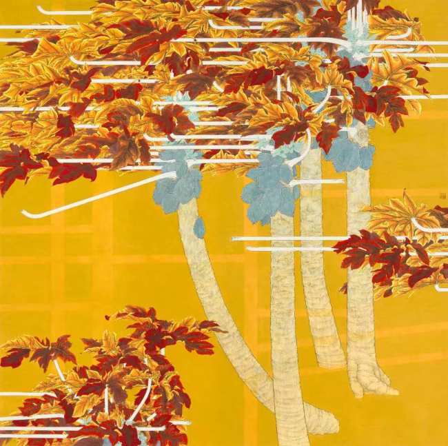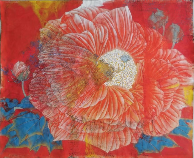 在色彩的运用上,他不满足于传统工笔花卉的设色套路,而是将色彩作为表达情绪、营造意境的重要媒介。其色彩或浓烈如焰,或淡雅如雾,或冷暖碰撞,或和谐交融,每一次着色都是一次对视觉张力的精准把控。用色彩的层次与对比,在画面上构筑起一个个或热烈、或幽寂、或绚烂、或清寒的精神场域。这种色彩的表达,源于他对自然、对生活的敏锐感知,以及对色彩语言当代性的深刻思考。他让色彩在工笔的语境中焕发出新的生命力,使得他的花卉作品在带来视觉冲击之余,更具情感的穿透力。