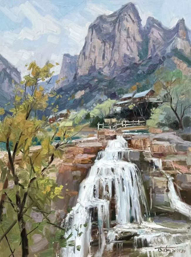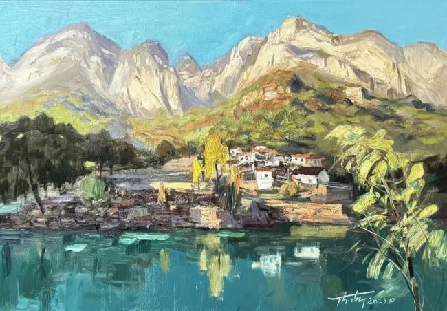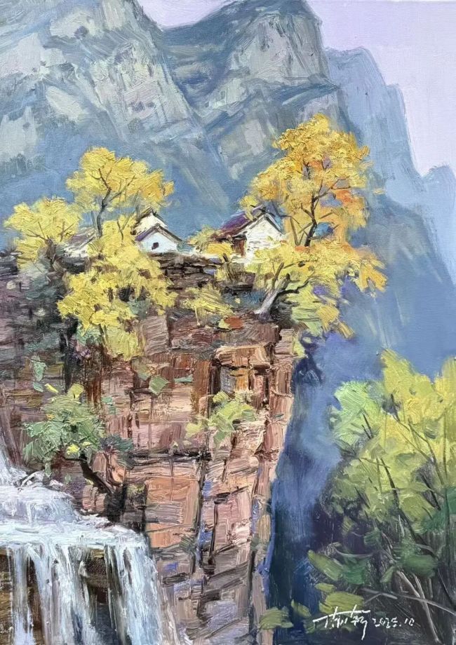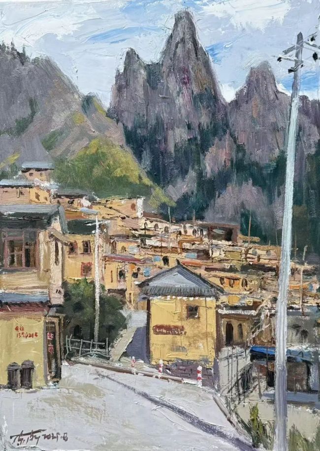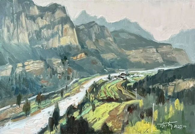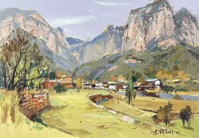 西行漫记,是油彩与山河的诗意邂逅,更是心灵与人文的深度对话。画家陈渐携画友踏秋西行,从甘南扎尕那的秘境到敦煌戈壁的苍茫,自河西走廊的厚重至南太行的雄奇,一路饱览壮景、深耕人文肌理。扎尕那藏家三代女性的朴实虔诚,在画布上定格成永恒;洛克线的崎岖、河西走廊的文脉,皆化作笔端跃动的鲜活能量。写生路上的未知境遇与临场悸动,让自然之灵与人文温度交织共生,恰是“师法自然,天人合一”理念的生动魂魄。