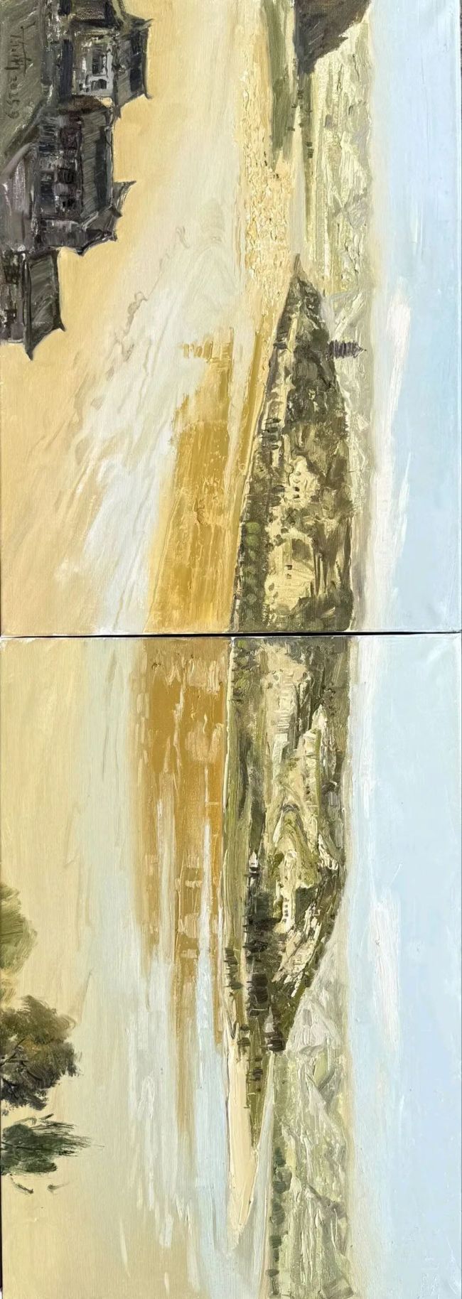 我对写生情有独钟,皆因它的不确定性。每一幅写生作品,随着绘画步骤推进,画面效果总会出现意想不到的变化,各类问题接踵而至,需要逐一解决。这要求画家具备完整的应对策略与解决方法,驾驭画面如同驯服野马,该放则放,该收则收,方能收获成功。此外,置身大自然中,身临其境的现场氛围能极大调动画家的情绪与情感,这份能量会通过多样的技法语言,情不自禁地宣泄在画布上——这是画室中面对照片冷静描摹、慢慢制作所无法实现的。