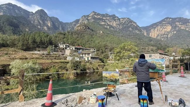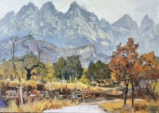 最后,我们抵达河南南太行,本想与秋日红叶赴一场约会,却遇上连绵秋雨、气温骤降,写生进程受阻。后来我们转战秋沟村,天气逐渐好转,新一轮的写生之旅也随之开启。