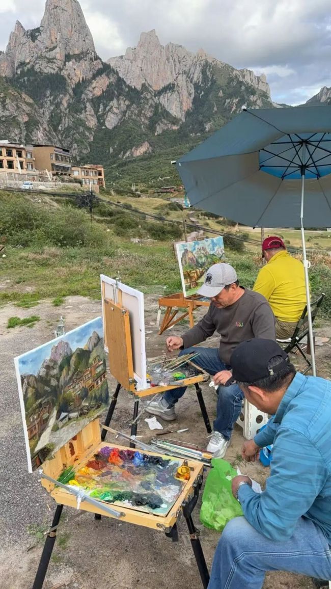 五年前,我曾与友人自驾至此写生,那迷人景致至今想来仍令人震撼难忘。扎尕那,藏语意为“石匣子”,素来有“云雾缭绕时像仙境,阳光倾泻时是人间”的美誉。寂静山野间,经幡摇曳,山涧雄鹰盘旋,仿佛远山在深情呼唤。得益于国家西部开发的浪潮,如今的扎尕那,比五年前愈发繁荣热闹。