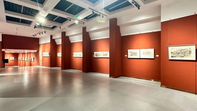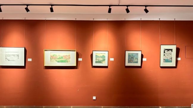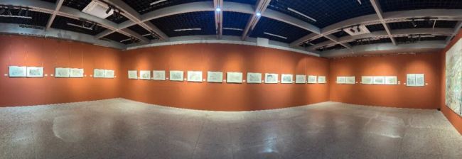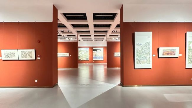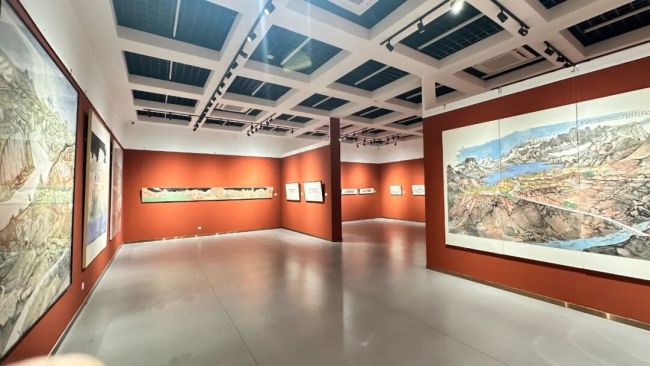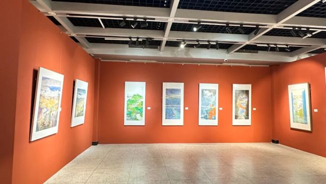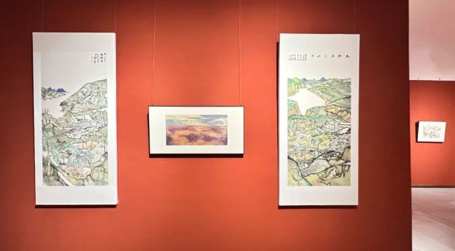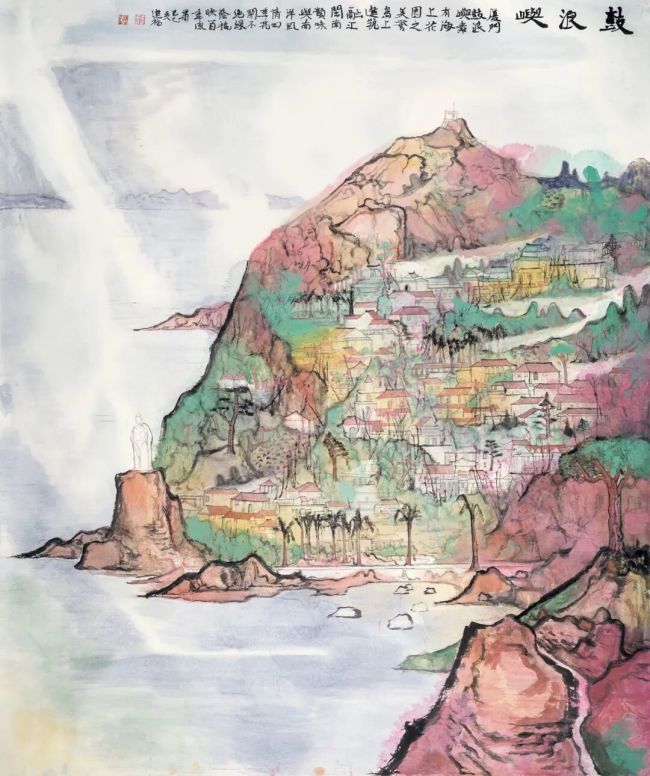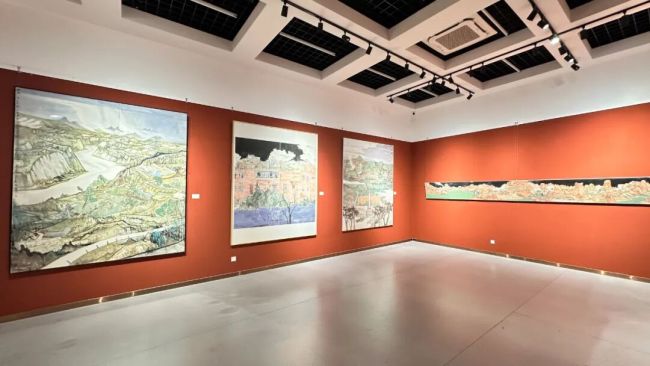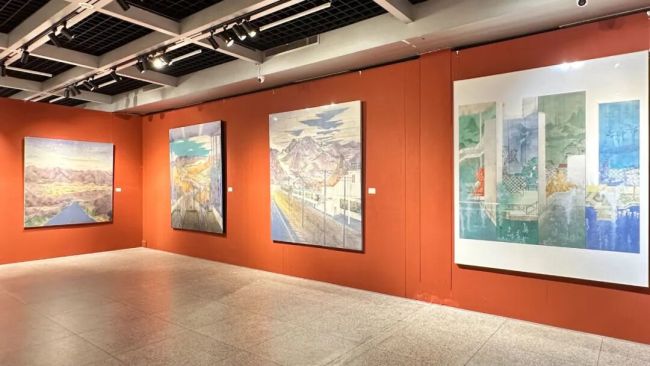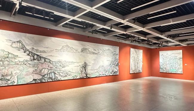 建福的笔墨也在不断锤炼与拓展的过程中去表现这种时空的永恒。他师从林容生先生,接受了从本科到博士阶段最完整的中国画技法与理论的学习,很早就熟练掌握了工笔青绿山水的完整的技法语言,能熟稔运用在大幅创作中。《远方》中创造性地用古典青绿绘画语言描绘当代高铁的景观,铁轨延伸的远方,联系起古典与当代,过去与未来的的交响都汇聚在象征时光连接点的站台。墨色的层叠、渲染的深浅、线条的顿挫转折,都随心所欲地运用在画家与山水、与自我对话过程中。更让我们惊喜的是,建福在近年的创作中,进一步将原有既精微又兼松弛感的工笔青绿绘画语言,成功地转换为写意语言。这个展览的主题《八闽揽胜》,正是他将个性化笔墨语言去表现最熟悉的闽地山水的创作实践。当看到他用一种看到他游刃有余地穿梭在工笔与写意两种绘画语言之间,我们能体会那种一以贯之的对生命节奏与时间永恒感的表达,他既塑造了空间的形貌,也用“笔彩生动”的绘画语言去描绘山的坚实、松的长青、风的无形,共同构成了时间的另一种面貌——画家内心深处淡然却执着地追寻艺术的静谧与永恒。