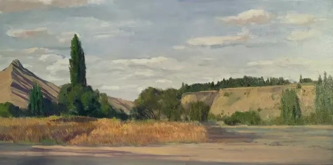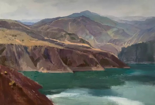 这种风景的表达,更是一种“空间的叙事”。他在构图上巧妙地经营着远与近、高与低、疏与密的关系。远景的山峦被他处理得朦胧而苍远;近景的草木或屋舍则刻画得真切可感。他笔下的风景写生,是有“魂魄”的。那魂魄是新疆大地的雄浑与苍凉,是丝路故道的神秘与悠远,更是自然力量在天地间的肆意挥洒。观者在他的风景里,能听见风过戈壁的呼啸,能触摸到岩石的冰凉,亦能感受到这片土地的雄浑与壮阔。