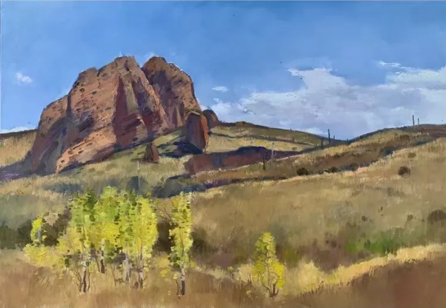 新疆,是大地在时光中写就的史诗,而孙立新是这史诗的忠实译者,却又带着艺术家的浪漫解构。在他的风景写生作品中,我们能看到一种“粗粝中的细腻”。新疆的山,多带着荒原的野性。孙立新以厚重的笔触堆叠出山体的质感,但他又不耽于“粗野”,而是在粗犷的轮廓里,嵌入光影的细腻变化——清晨的阳光如何给山尖镀上金边,午后的云影如何在山坡上投下斑驳,黄昏的暮色如何让峡谷浸满暖棕……他捕捉到了光影的“瞬息性”,让静态的山峦有了呼吸……