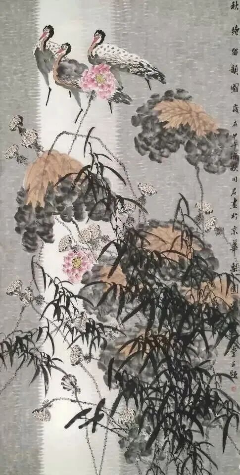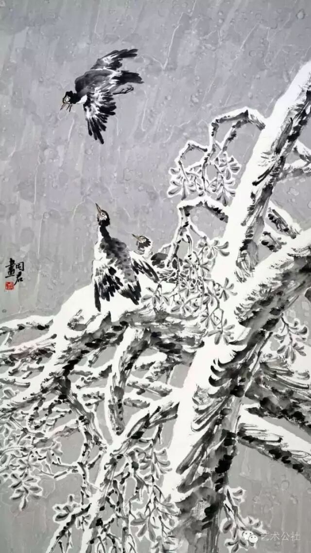 说起王同君,北方花鸟画的代表之一,却没有高枕无忧,安步当车,喜上眉梢。突破是每一个画家面临的命题,原地踏步就是后退,今天的画坛新人辈出,技法与技巧,观念与价值,颠覆与创新,花样繁多,一不留神开宗立派登上头条。同君虽不甘寂寞,却也不善于钻营炒作,踏实做人老实画画,如何突破自己无疑刀口撒盐,痛苦是必然的。同君给了我们极大的惊喜,由“北国系列”、“青绿花鸟系列”到“荷塘系列”再到“雪景寒禽系列”,跨栏式的飞跃,恍如一夜间发生的事情。因为同君的低调,同君的沉默,只在无声无息中,夜以继日,埋头苦干,究竟画坏了多少张我们不知道,却知道没有捷径的妙方,呕心沥血一定是要有的。