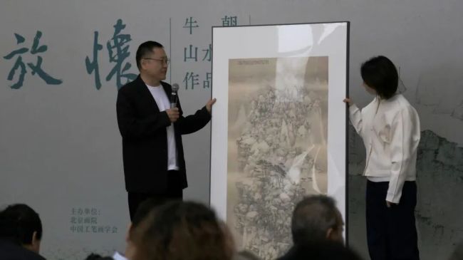 11月7日上午,北京画院专职画家、一级美术师牛朝的个人巡展“湖山放怀——牛朝山水画作品展”在苏州美术馆正式开幕。此次展览以细笔山水为主,汇集了牛朝近年创作的百余幅精品,包括大幅创作和手卷、册页、条屏及创新的“琴画”等形制,不仅展现了艺术家深厚的传统功底与个性探索,更成为南北艺术对话的一次重要实践。