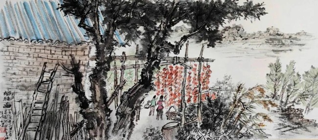 晒柿图26cm×60cm
