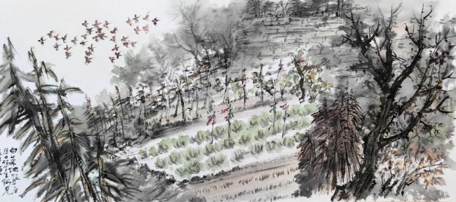顺着山脊到高处写生,看白云初晴,望幽鸟相逐。在村落里,白天也能听到鸣叫声,也会看到斑鸠栖居枝头,还有从白菜地里忽然起飞的一群群山雀,草丛中秋后的蚂蚱不肯挪动脚步,任你捕捉,就连站在山岗上的黑山羊,远望着我们的到来,发出咩咩的呼声……生生不息,那么让人陶醉。