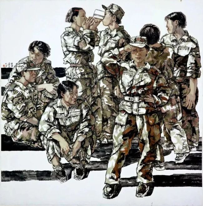 她的创作题材始终聚焦于时代与人民,尤其擅长表现乡村建设、民工生活与军旅题材。在她的笔下,农民工的艰辛与坚韧、乡村的变迁与新生、军人的热血与柔情,都被刻画得入木三分。作品中既有“漫天沧桑”的厚重质感,又有“天生大道”的精神气象,那泥土的芬芳、尘土的气息,透过笔墨扑面而来,让观者在视觉震撼中感受到劳动人民的喜怒哀乐,体悟到时代发展的脉搏律动。她用画笔记录社会主义新农村建设的壮阔图景,展现农村文化的多元创新,将个人艺术追求与时代使命紧密相连。