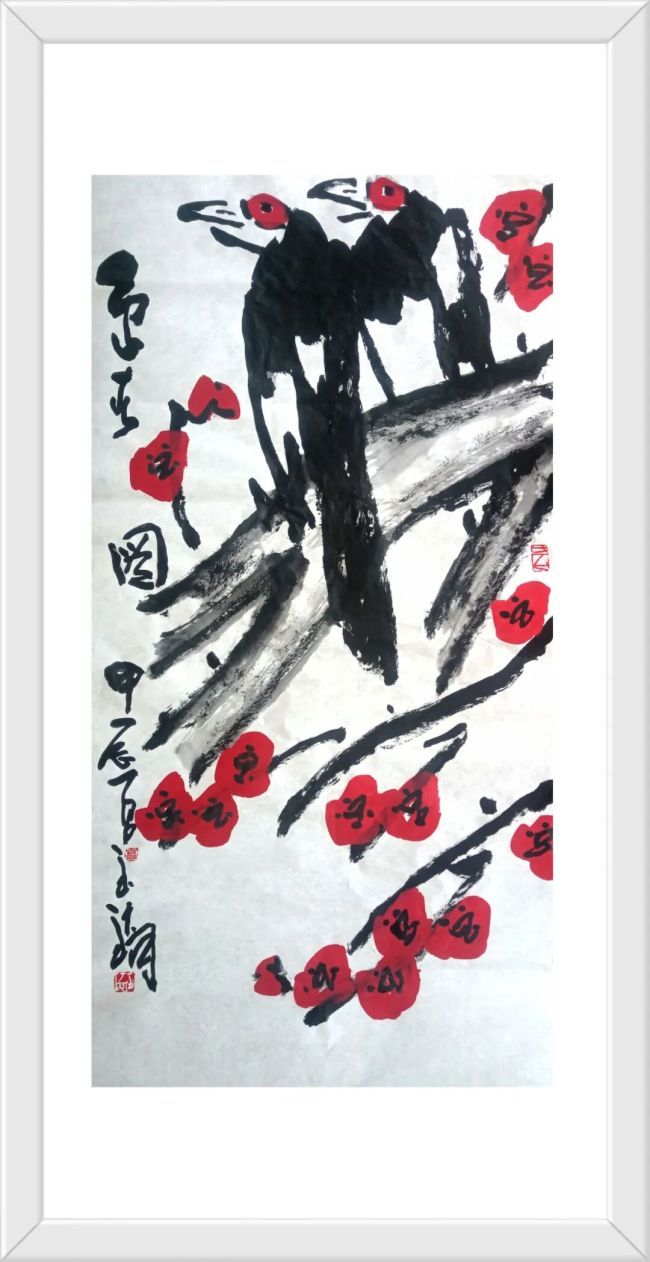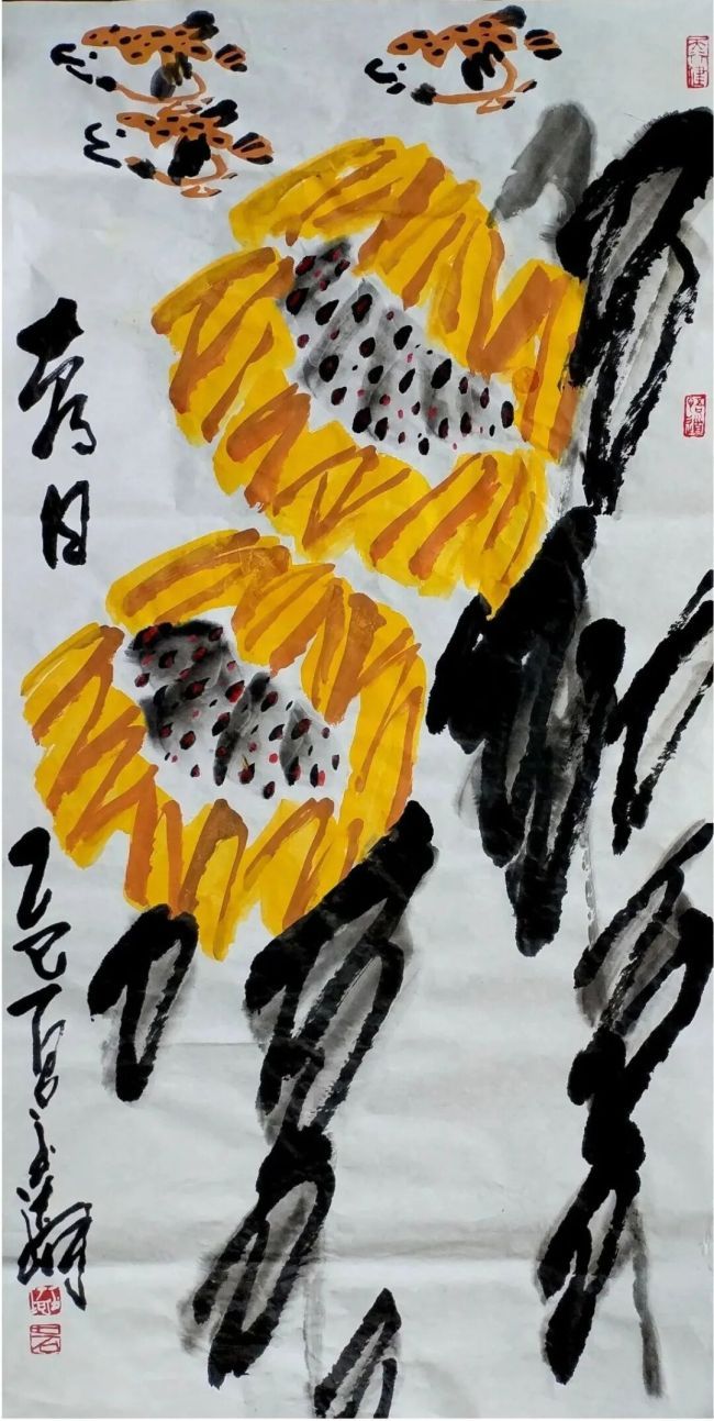 大写意花鸟画,在前辈大家的探索和实践中,已有相对固有的题材和表现模式,徐渭的恣肆,朱耷的奇谲,吴昌硕的苍厚,齐白石的平和,崔子范的放旷,潘天寿的高古,李苦禅的凝炼,风格迥异,各领风骚,都达到了一个高度。在这些大师旁边玩游戏,无非是自讨苦吃!但是不站在前辈大师的肩头上,便成了无本之木,无源之水,所以要有勇气,知难而进,向大师学习,以大无畏的精神向艺术的高峰勇敢攀登,或可得一二,我在努力实践着。崔先生对我讲过,二十一世纪的绘画,一定要和时代同步,要和现代的建筑相结合,谁抓住了这个点,谁就为中国文化做出了贡献。这是一个大艺术家的精准见解。毕竟画是挂在墙上看的,而不是压箱底的。据此,我的画就要朝这个方向发展,即继承是中国传统的,表现手法和形式是现代的,题材和内容是中国人喜闻乐见的。