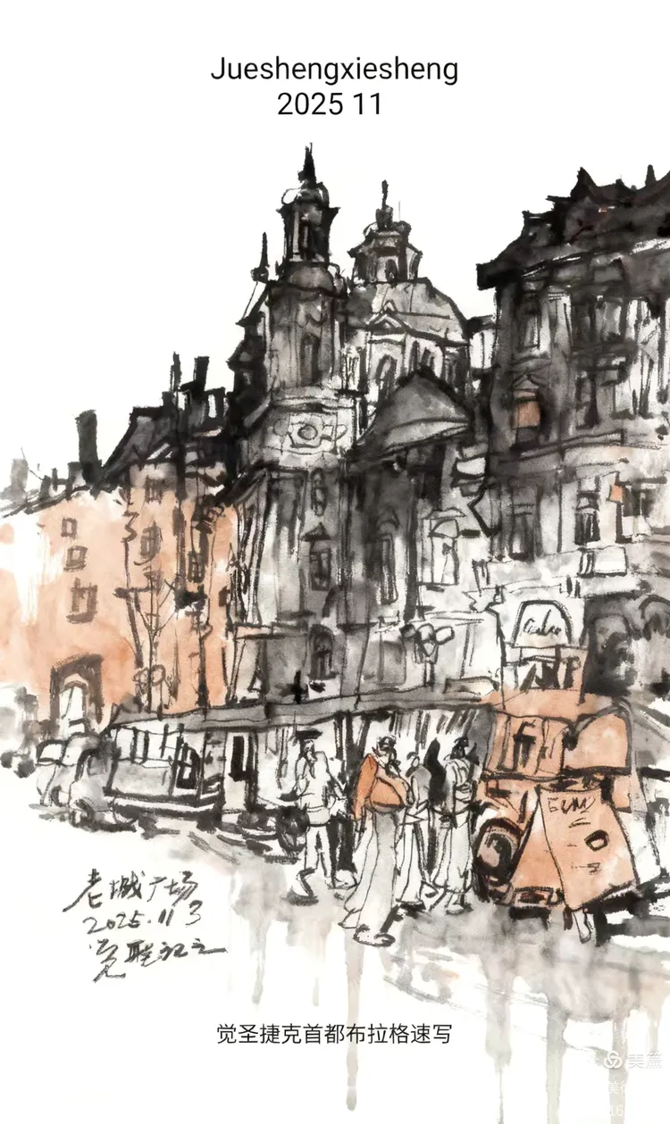 2013年,在布拉格与Galerie Zdeněk Sklenář 画廓的老板Zdeněk Sklenář 先生就见过面,还一起吃过饭,从旧照中知道我们应该是早已相识,只是时间太久,没有了太多的印象。再次见面,总有似曾相识的感觉,后来证实果不其然。史克纳先生来过中国168次,据他介绍,他小的时候,他睡的床上面就挂着齐白石的画,他有16幅齐白石的画,旁边就是李可染,傅抱石,吴作人的作品,这些画对他影响很大,于是乎他上个世纪九十年代就去了中国,1955年他的叔叔更早就去过中国,当时机场接机的是李可染,李可染曾邀请他叔叔一起去画猴子,这些作品后来都留下了,在此期间,他们结识了艾青,傅抱石,吴作人,艾青为他叔叔还过画,这些有纪念意义的作品都保留了下来,他叔叔从中国回来,回到了当时捷克斯洛伐克后,就开始了他叔叔的中国时代,以中国元素创作了很多作品,如西山,如古玩,持续最长的是他用欧洲人的视角创作了一系列西游记中的人物,现场看后不得不赞叹他对中国文化的热爱与持续深度的探索。他对中国艺术的热爱自然的影响到斯克纳先生的身上,以至于后来几十年的斯克纳先生对中国及中国人和中国绘画有着一种难解的情缘。此行斯克纳先生收藏了我的欧洲写生作品也是因十三年前那一面之缘的相续,更是因两个国家的艺术缘分而架起的一座桥梁。
