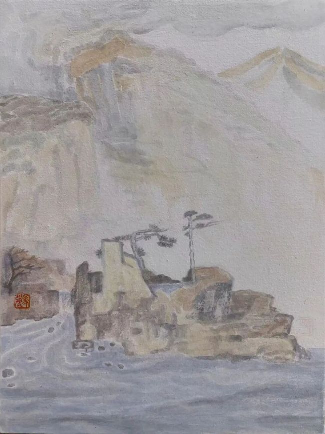 “我的创作灵感来自于禅意的感悟。敦煌壁画所传递的宁静与淡然,与禅意所追求的内在淡泊和智慧有着异曲同工之妙。每一笔的描绘,都是对心灵境界的探索与表达,是一次与自然、与自我的对话。在这些作品中,山水、楼阁、树木和岩石不仅仅是自然景象的呈现,更是心境的象征。