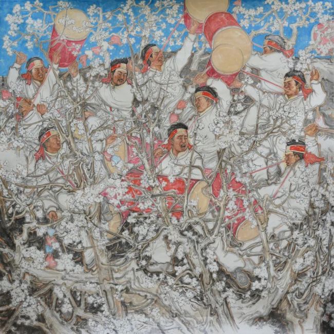 巫卫东《梨园春晓》中国画 200x200cm 2024