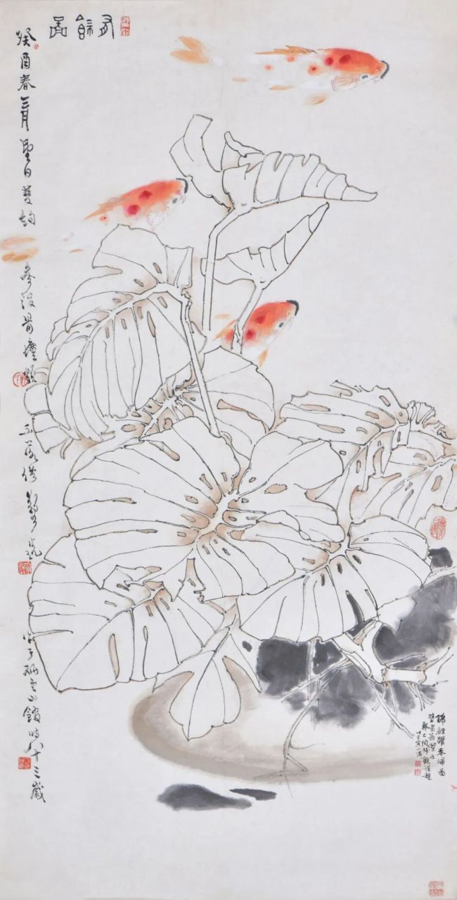 郑乃珖的工笔花鸟“艳而不俗”,他在传统中融入青铜器等元素,使作品充满生活气息与温暖感,体现了“对美好生活的向往”。
