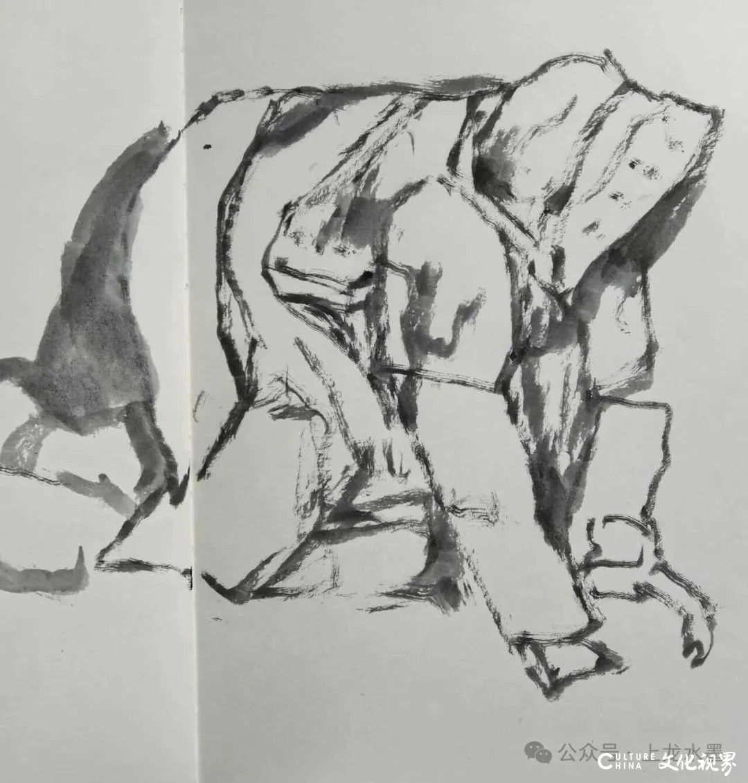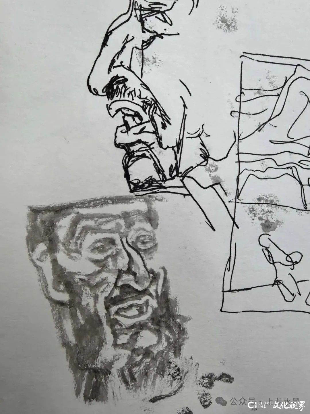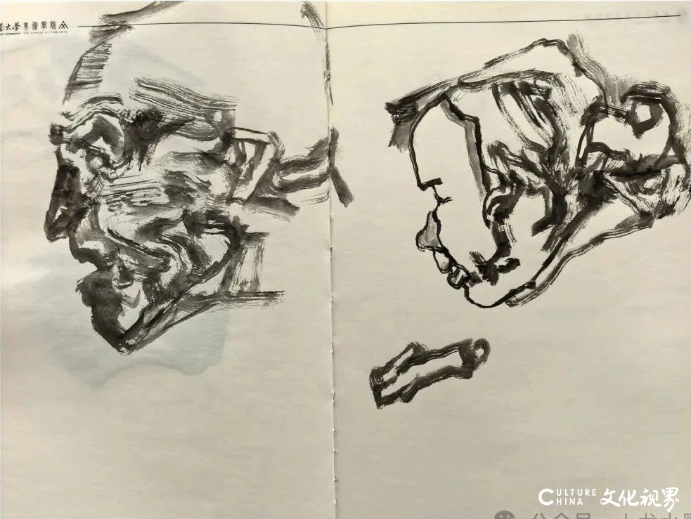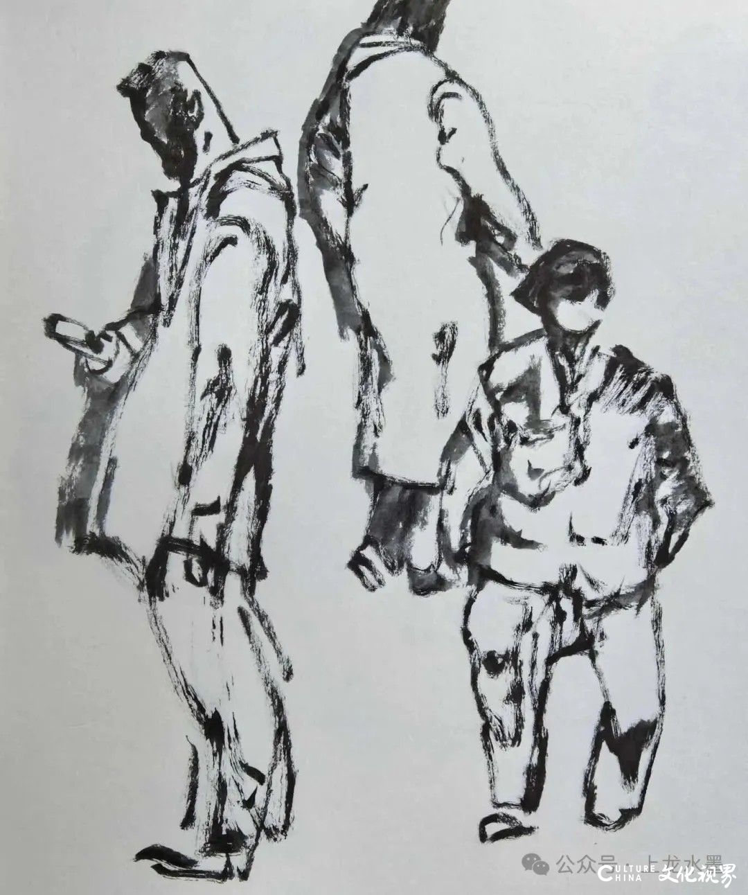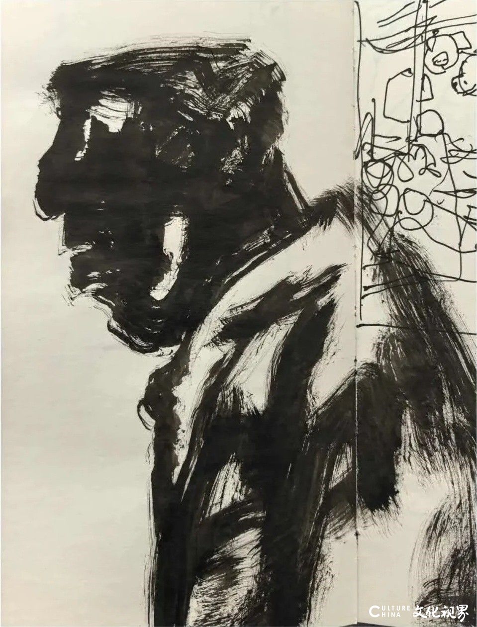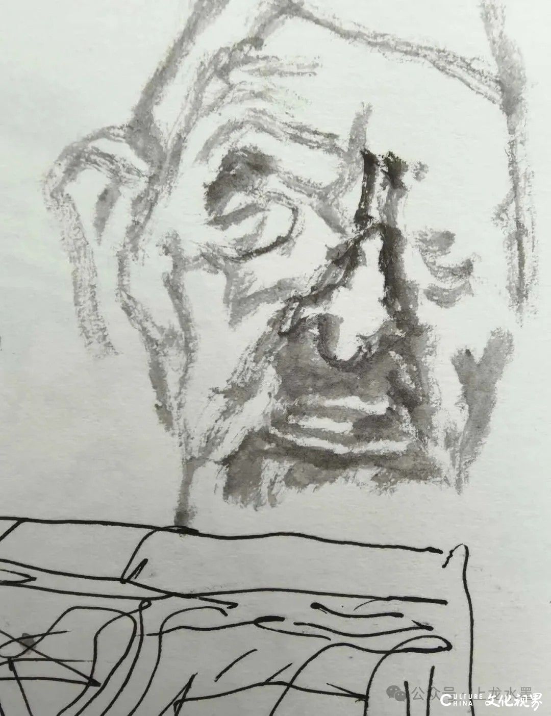 乡间山道上,农家窑洞里,聊天的茶室里,甚至出差的高铁或飞机上,陈老师都会随时随地随手涂抹,有时没纸就用酒店的记事本或单位的稿纸;没笔就拿起茶台上的茶刷画起来……这些速写往往心随手到,情由心出,笔情墨趣,自然天成!