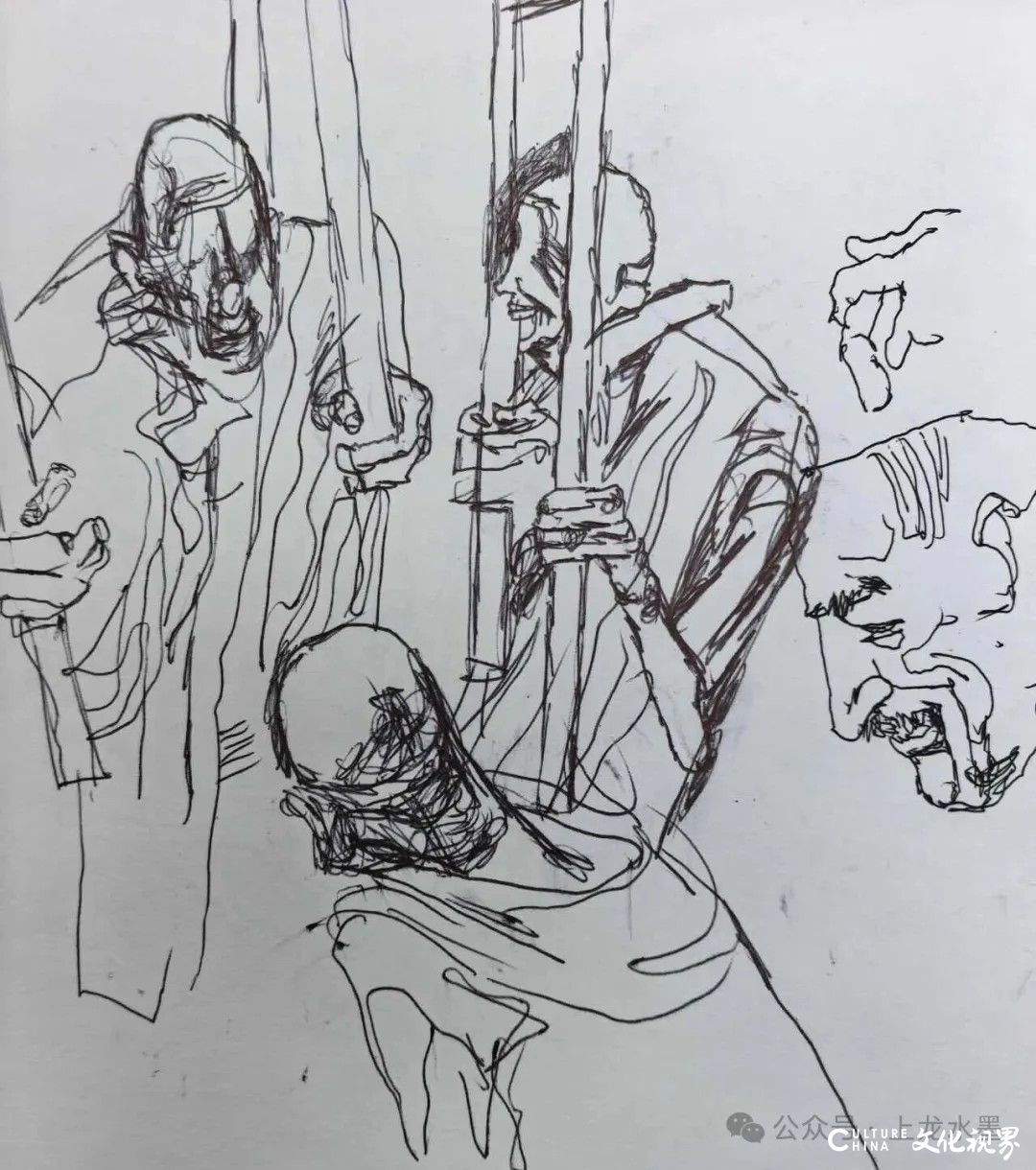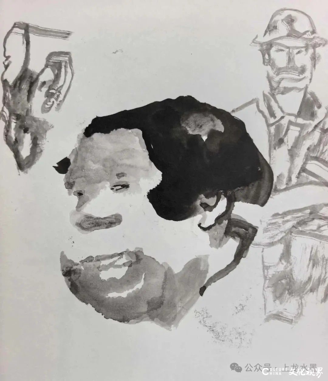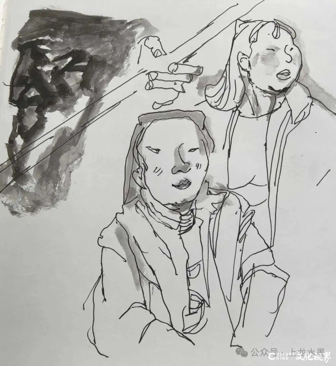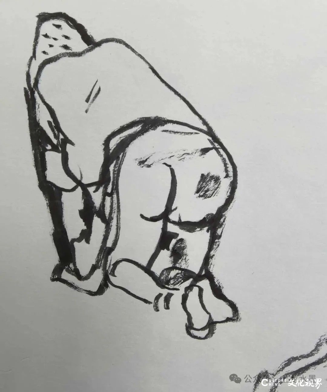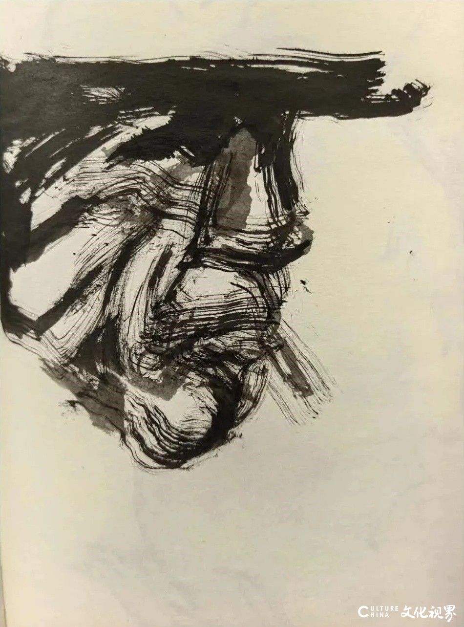 乡间山道上,农家窑洞里,聊天的茶室里,甚至出差的高铁或飞机上,陈老师都会随时随地随手涂抹,有时没纸就用酒店的记事本或单位的稿纸;没笔就拿起茶台上的茶刷画起来……这些速写往往心随手到,情由心出,笔情墨趣,自然天成!