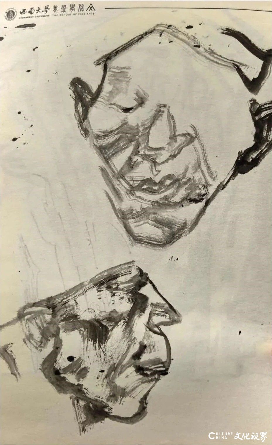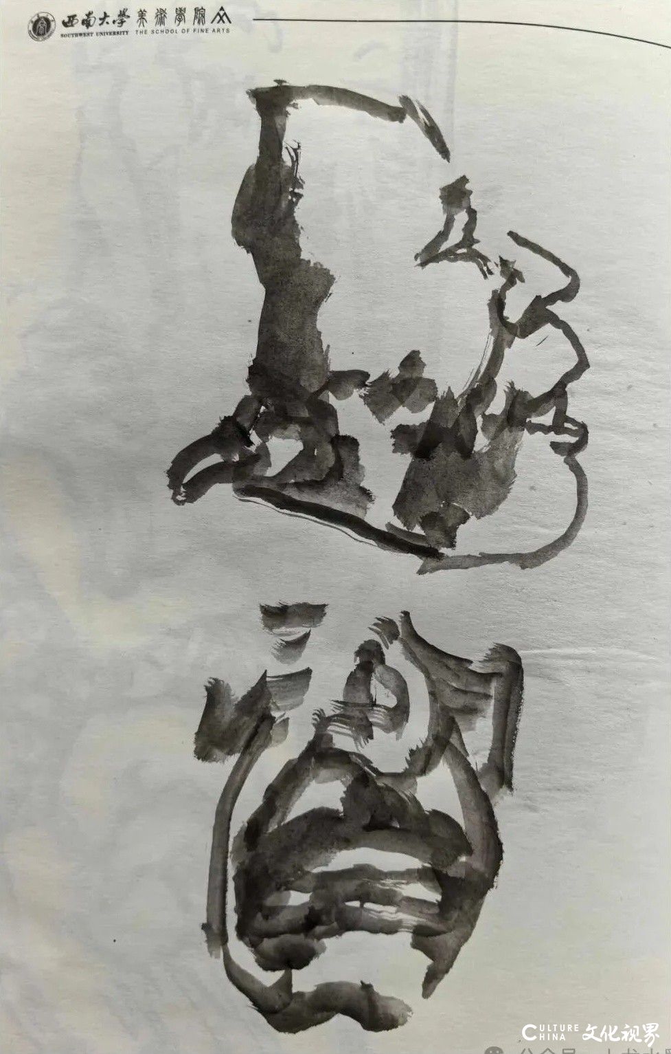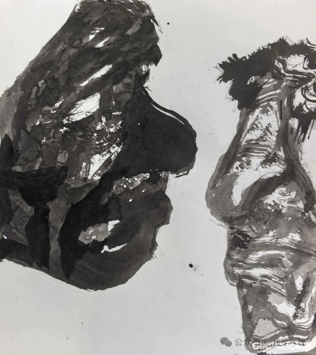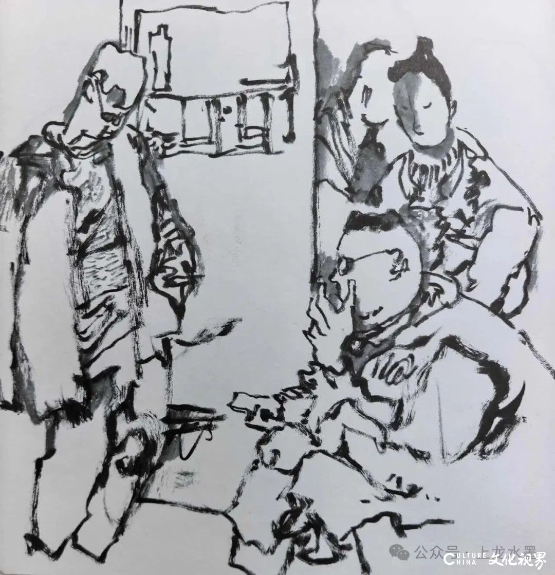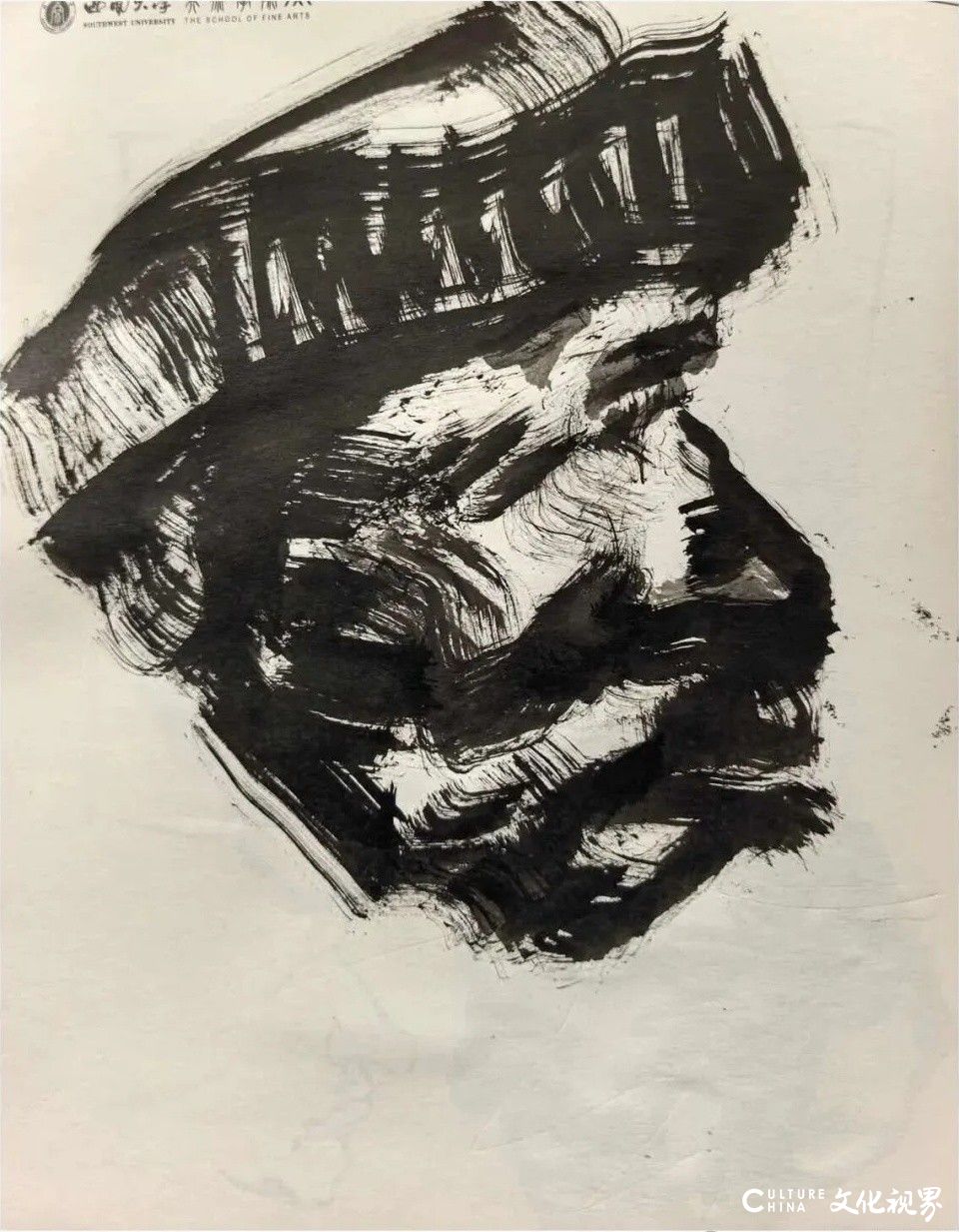 乡间山道上,农家窑洞里,聊天的茶室里,甚至出差的高铁或飞机上,陈老师都会随时随地随手涂抹,有时没纸就用酒店的记事本或单位的稿纸;没笔就拿起茶台上的茶刷画起来……这些速写往往心随手到,情由心出,笔情墨趣,自然天成!